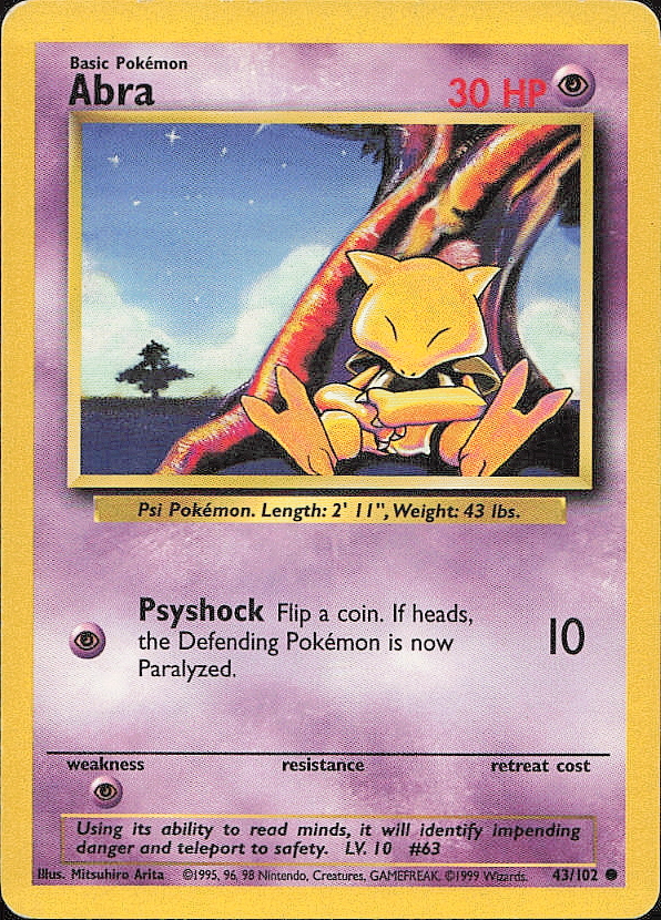 Vintage Pokemon 1999 Base Set Abra