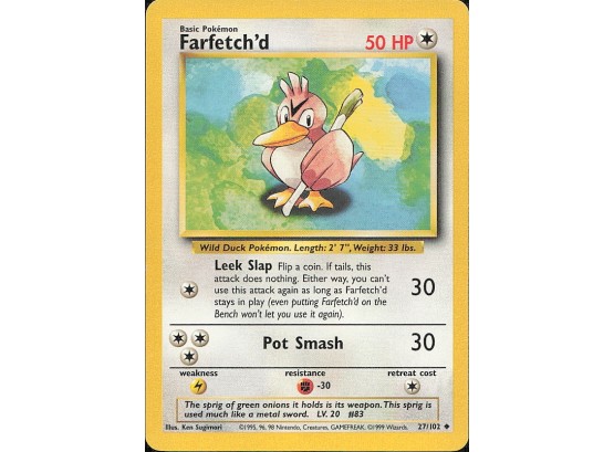 Vintage Pokemon 1999 Base Set Farfetch'd