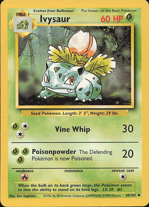 Vintage Pokemon 1999 Base Set Ivysaur