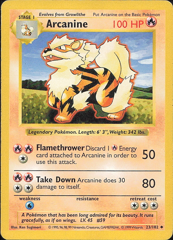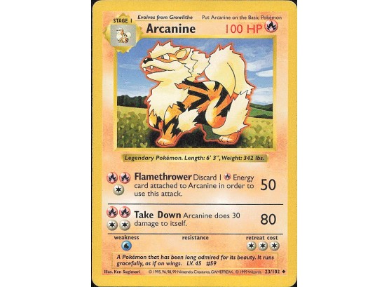 Vintage Pokemon 1999 Base Set (Shadowless) Arcanine
