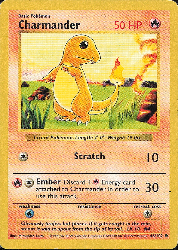 Vintage Pokemon 1999 Base Set (Shadowless) Charmander
