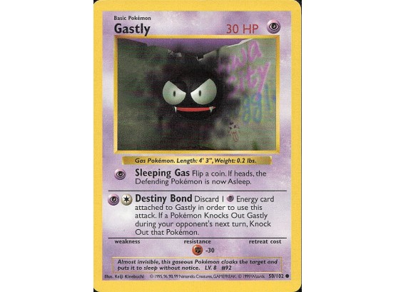 Vintage Pokemon 1999 Base Set (Shadowless) Gastly