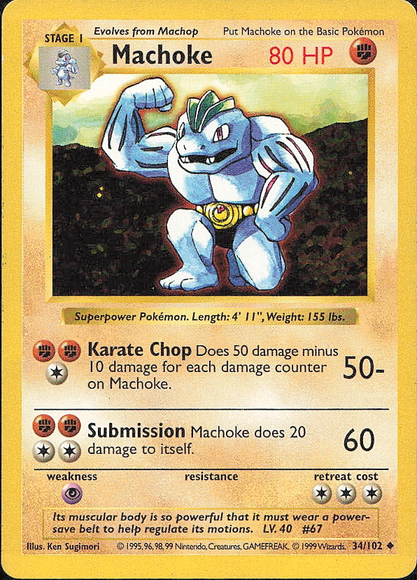 Vintage Pokemon 1999 Base Set (Shadowless) Machoke