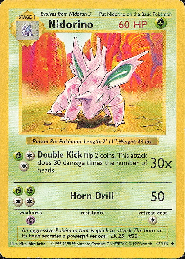 Vintage Pokemon 1999 Base Set (Shadowless) Nidorino