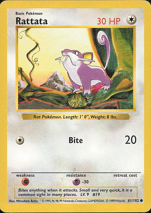 Vintage Pokemon 1999 Base Set (Shadowless) Rattata