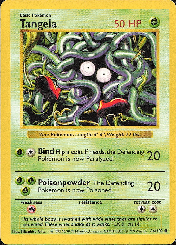 Vintage Pokemon 1999 Base Set (Shadowless) Tangela