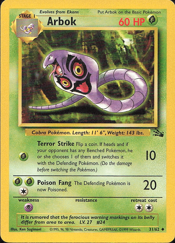 Vintage Pokemon 1999 Fossil Arbok
