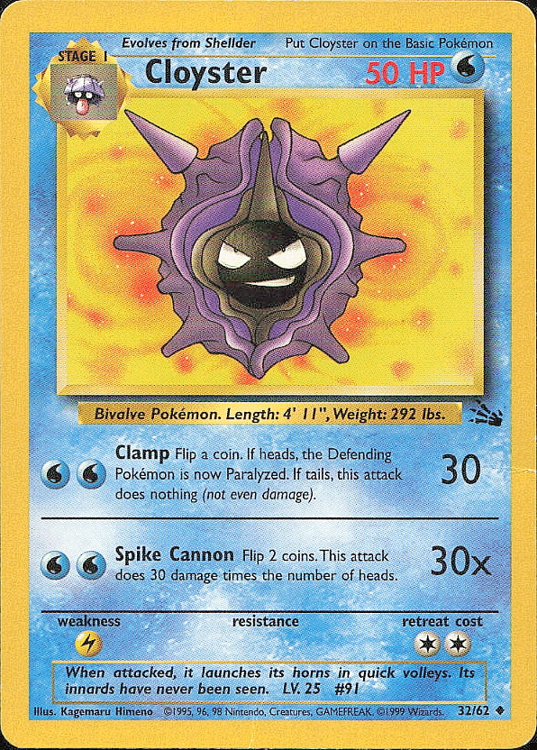 Vintage Pokemon 1999 Fossil Cloyster
