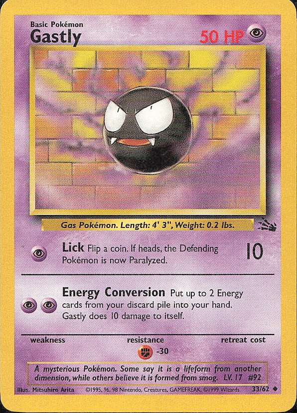 Vintage Pokemon 1999 Fossil Gastly
