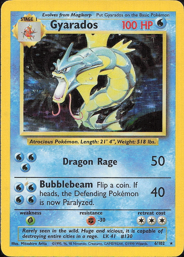 Vintage Pokemon 1999 Holo Rare Base Set Gyarados