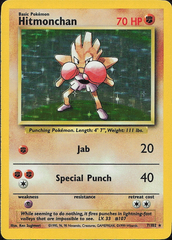 Vintage Pokemon 1999 Holo Rare Base Set Hitmonchan