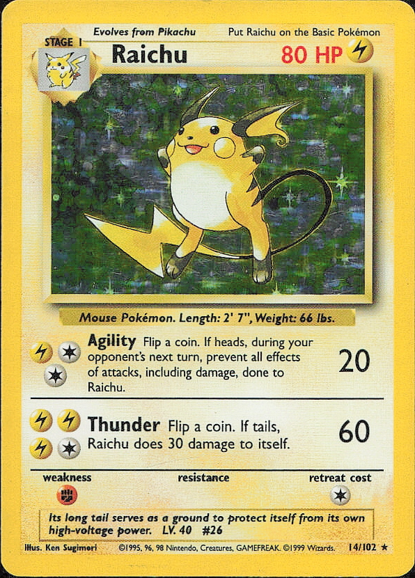 Vintage Pokemon 1999 Holo Rare Base Set Raichu