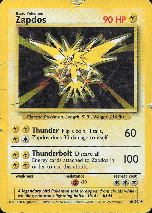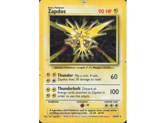 Vintage Pokemon 1999 Holo Rare Base Set Zapdos