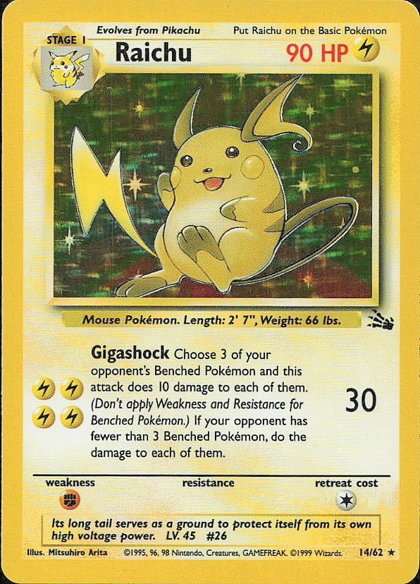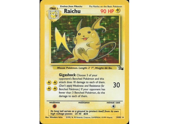 Vintage Pokemon 1999 Holo Rare Fossil Raichu (14)