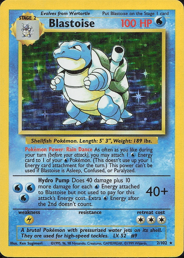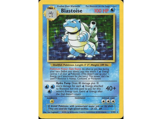 Vintage Pokemon 1999 Holo Rare,Iconic Base Set Blastoise