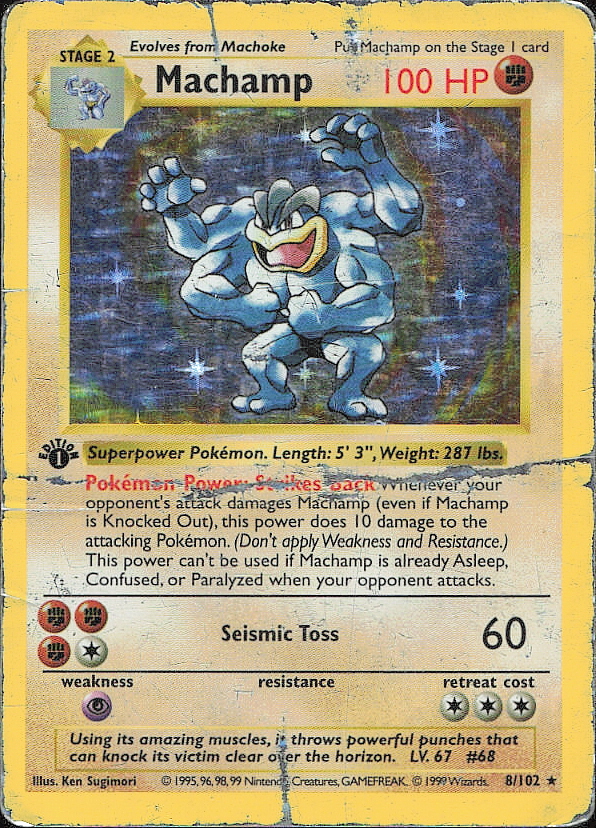 Vintage Pokemon 1999 Holo Rare,SHADOWLESS Deck Exclusives Machamp