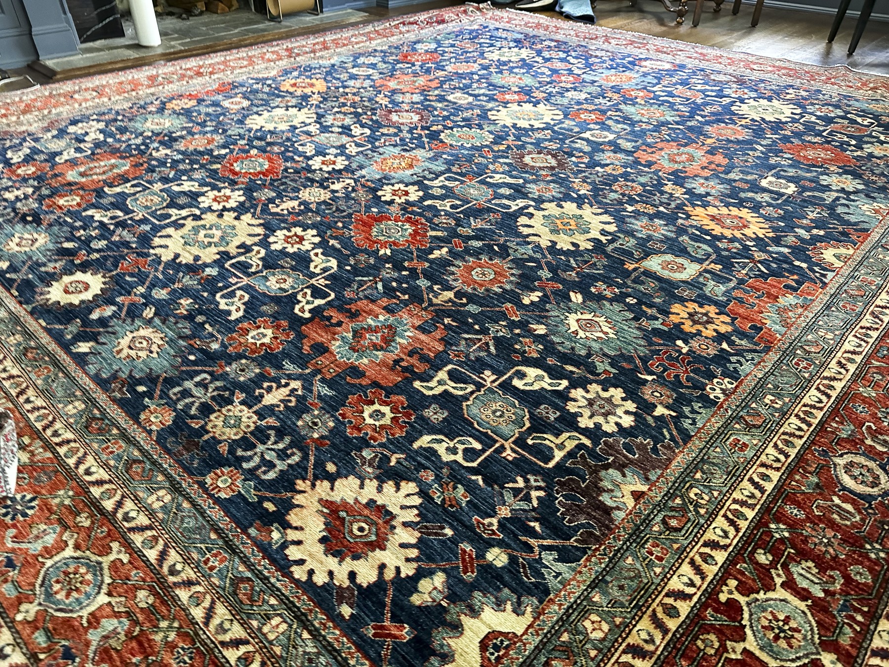 13'10" X 15'3" Square Persian Fine Serapi Hand Knotted Wool Rug