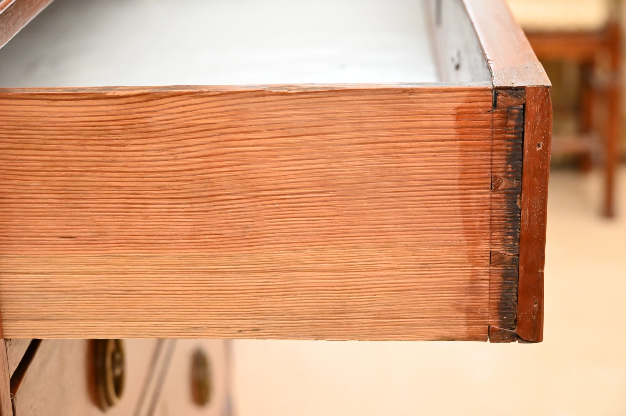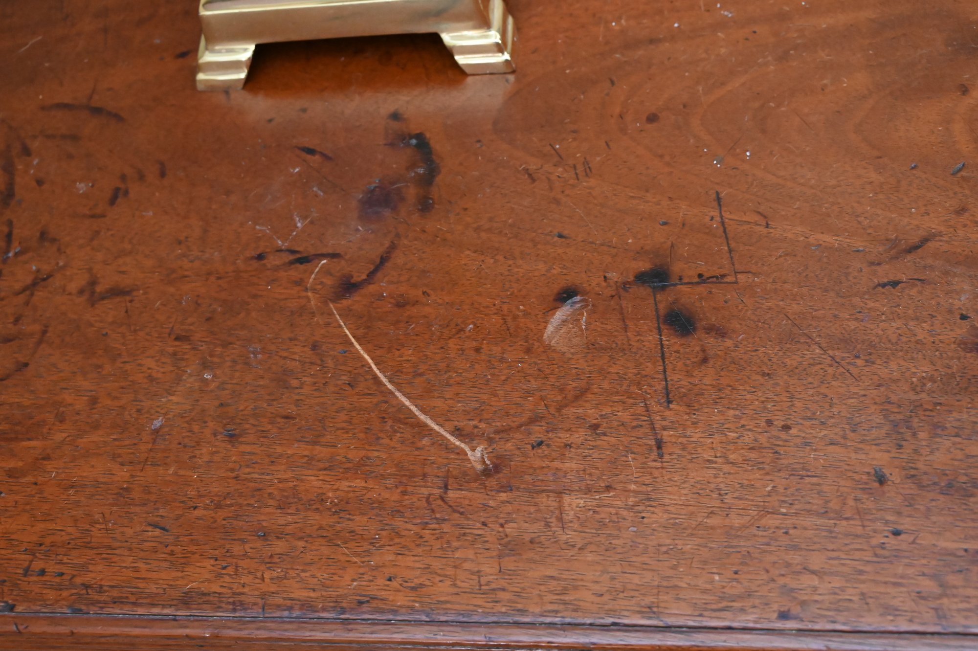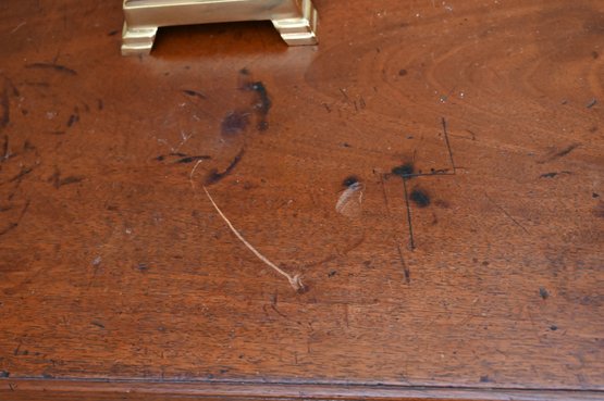 Good antique condition with wear consistent with age and use, including surface scratches, finish wear, and marks to the top; drawers appear structurally sound and functional.
