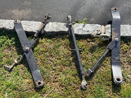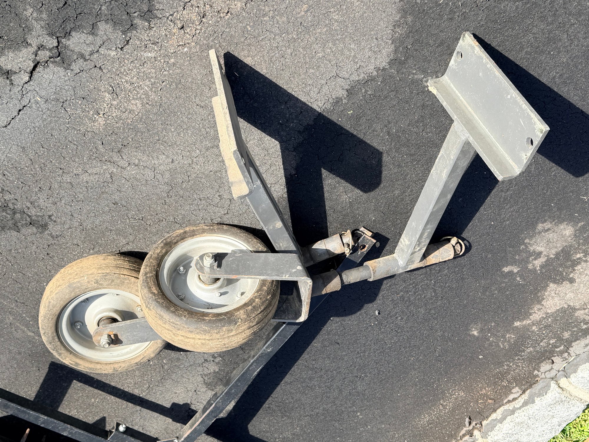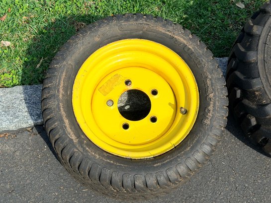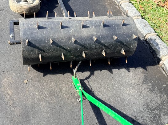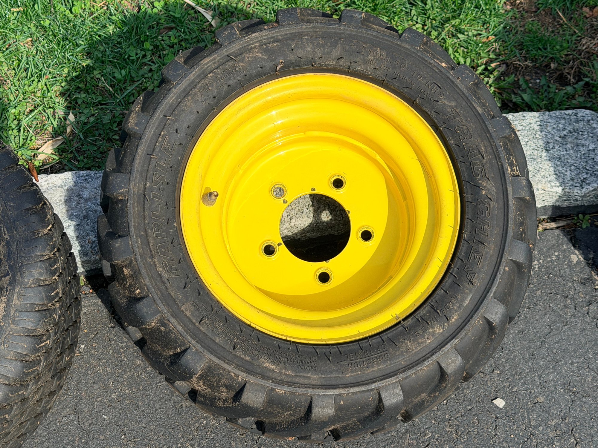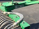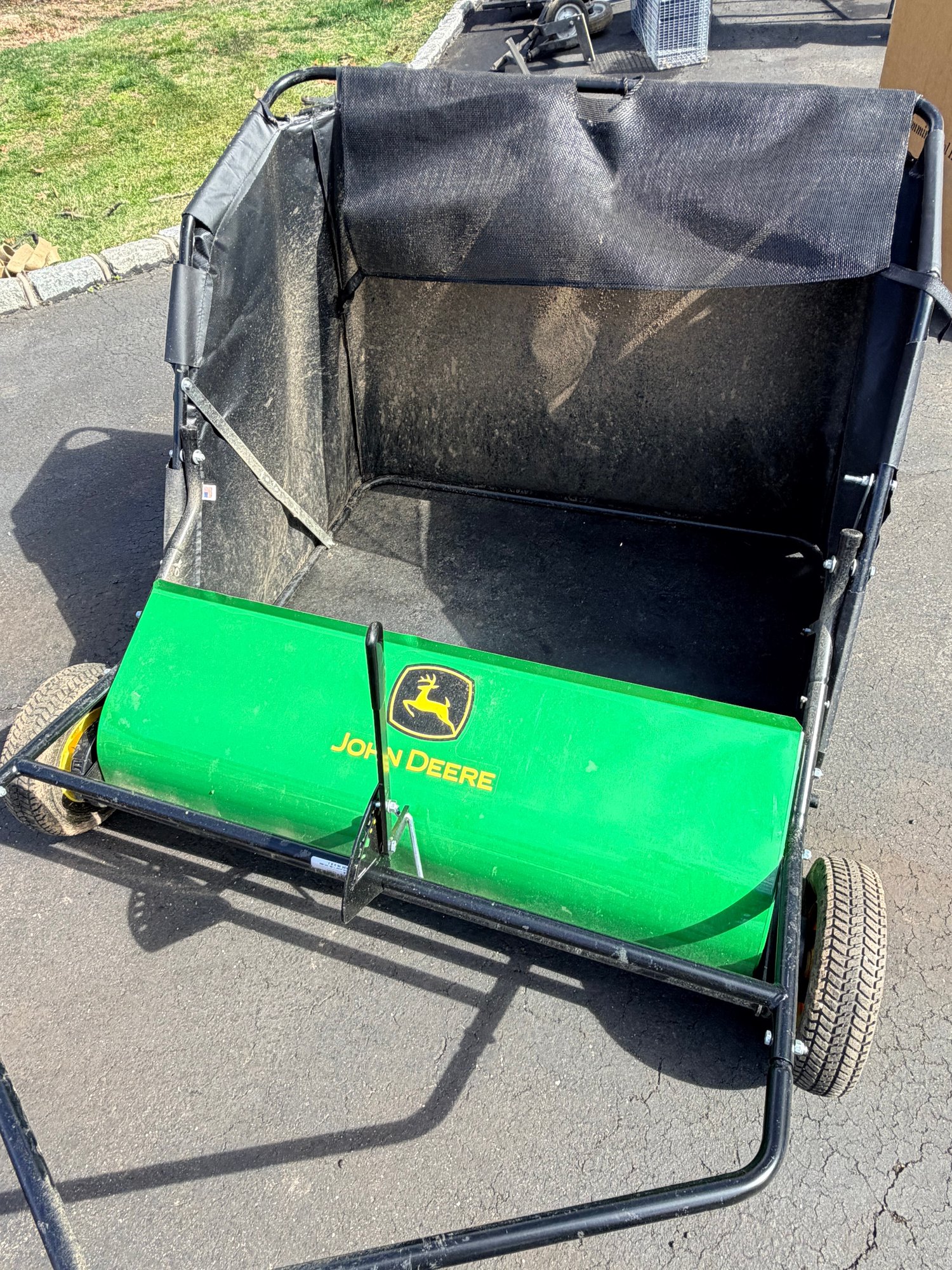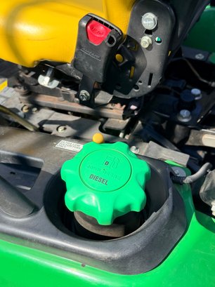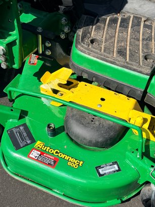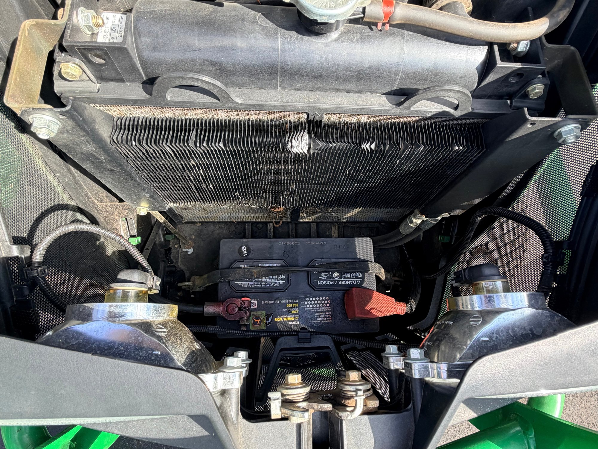 506 Hours. John Deere 1025R compact utility tractor equipped with an H120 front loader and 260 backhoe attachment. Features hydrostatic transmission, rollover protection bar, and mid-mount mower deck. Includes multiple attachments: rake, grading blade, lawn sweeper, plug aerator, spike aerator, along with an additional set of tires and rims. Suitable for landscaping, property maintenance, and light construction applications.