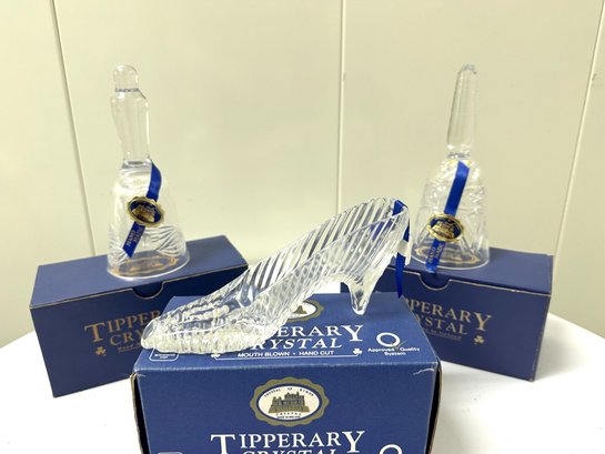2 crystal bells 6.5H and 12 crystal Shoe 2.5H, new in box