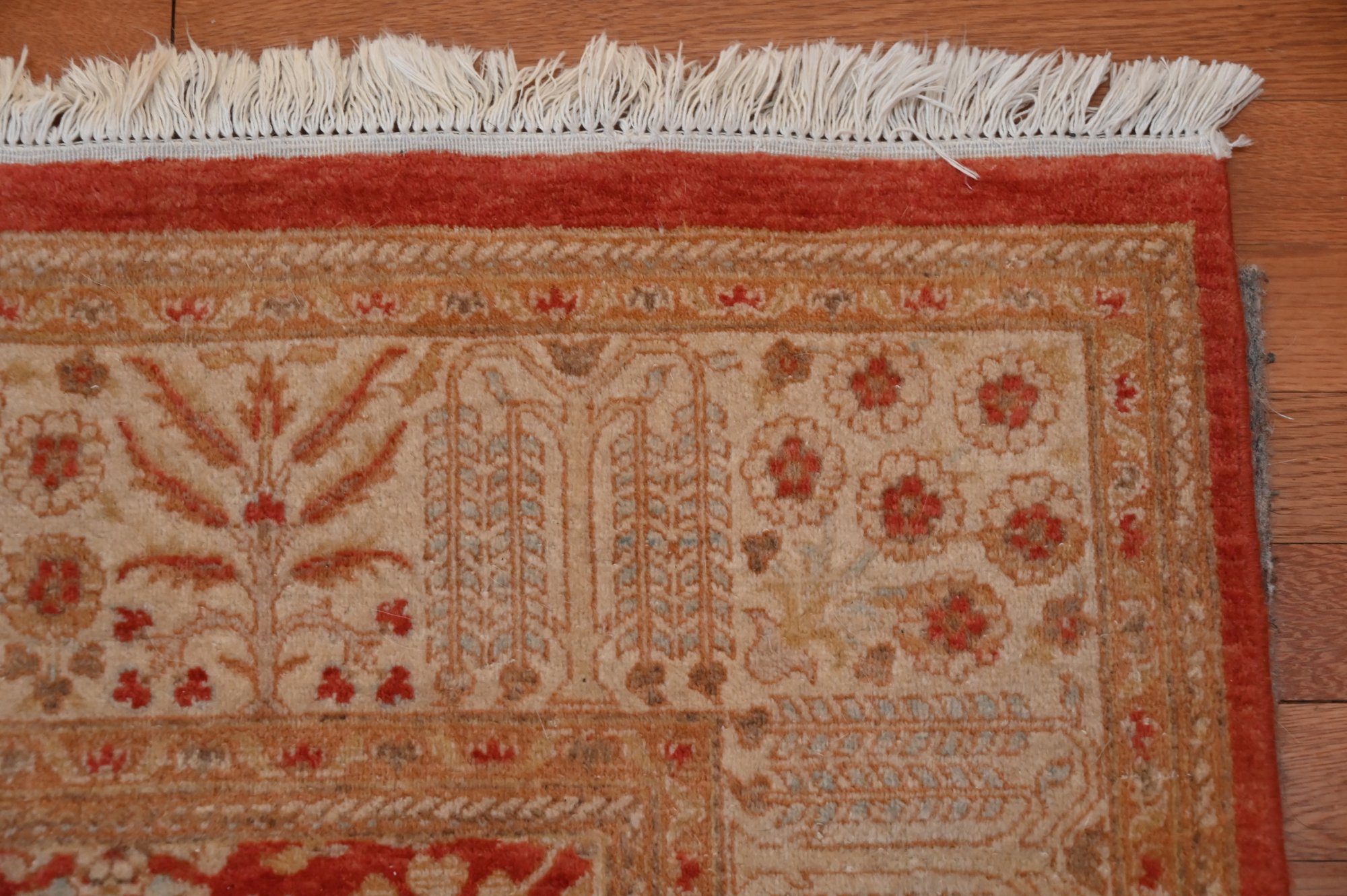 The border is multi-layered, with the main section in a soft gold or tan color, adorned with detailed floral elements and intricate corner motifs.