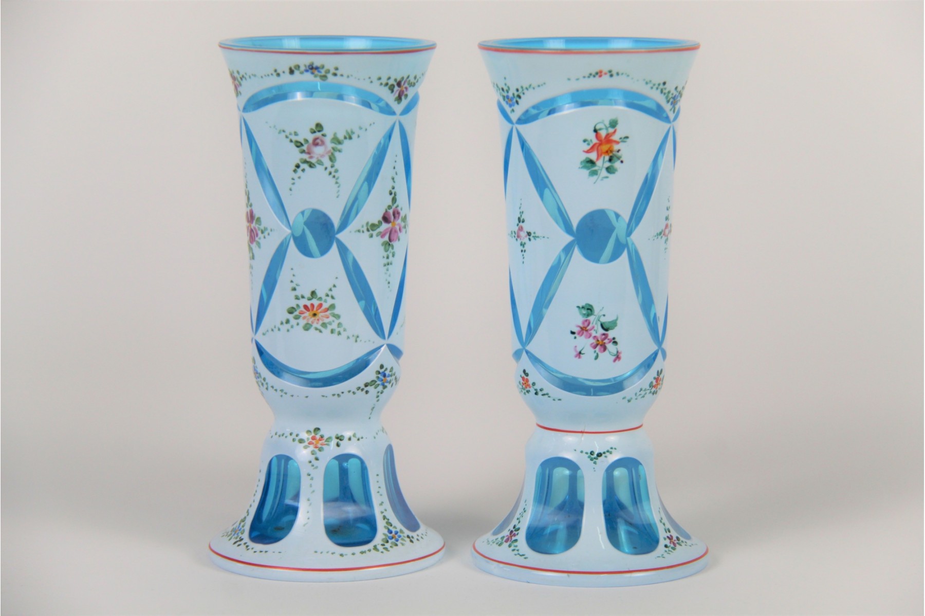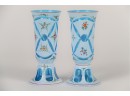 A Matching Pair Of Hand Painted Blue And White Small Vases
