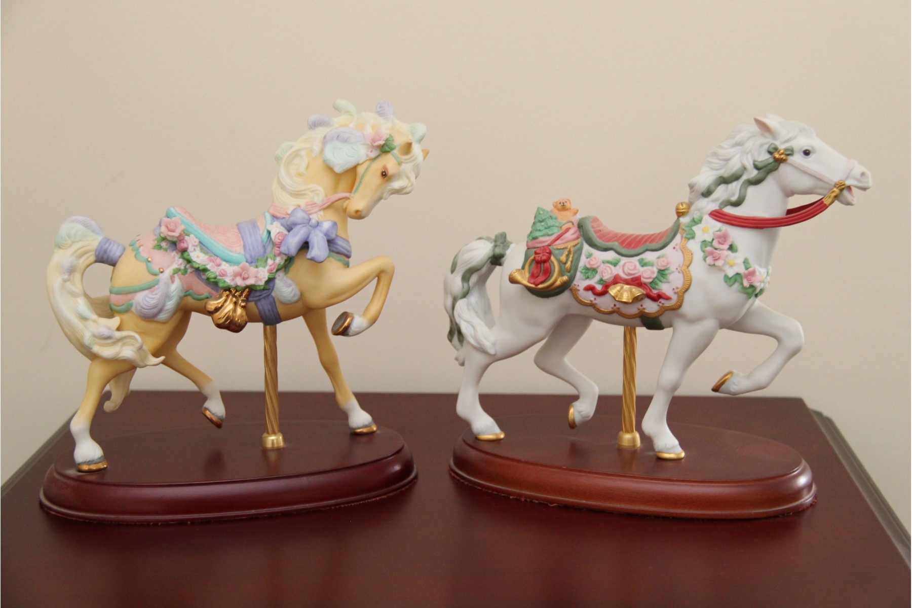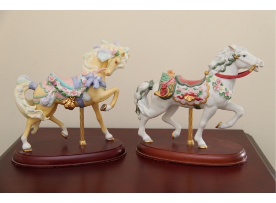 A Pair Of Porcelain Lenox Carousel Horses Including Christmas Saddle