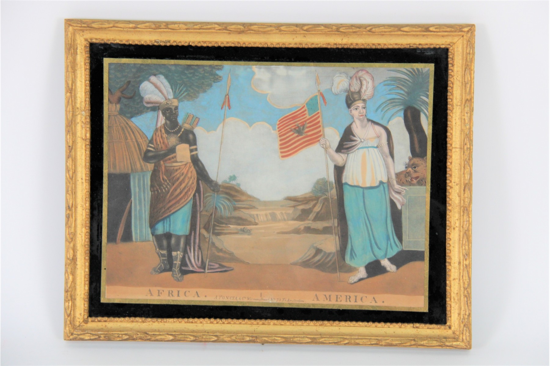 A. Poncia & Co. Africa & America Colorized Allegorical Print