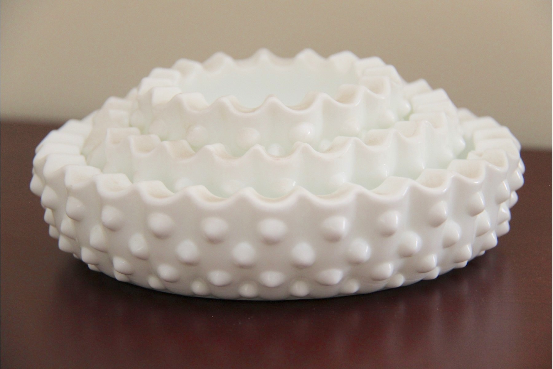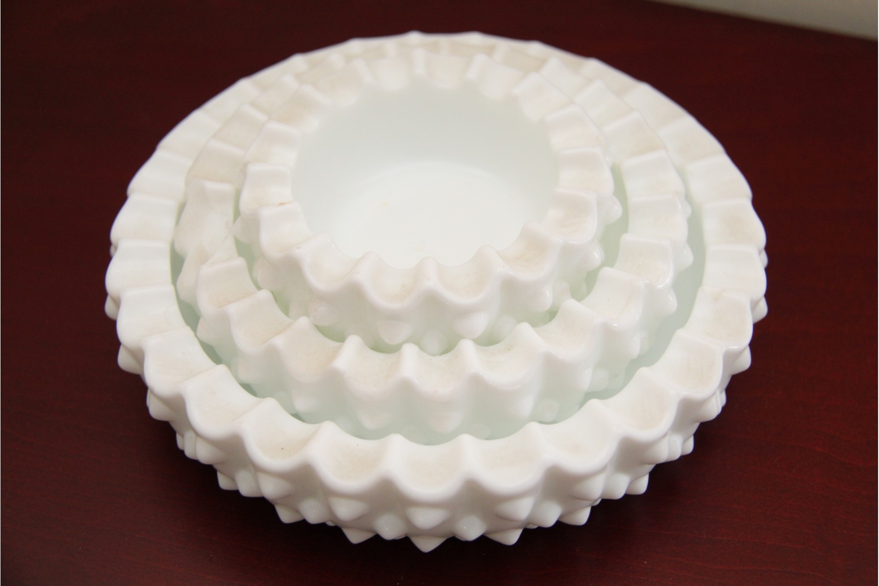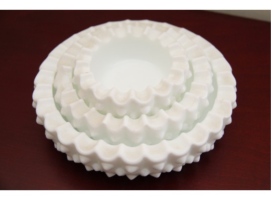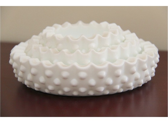 A Set Of Hobnail Milk Glass Stacking Dishes