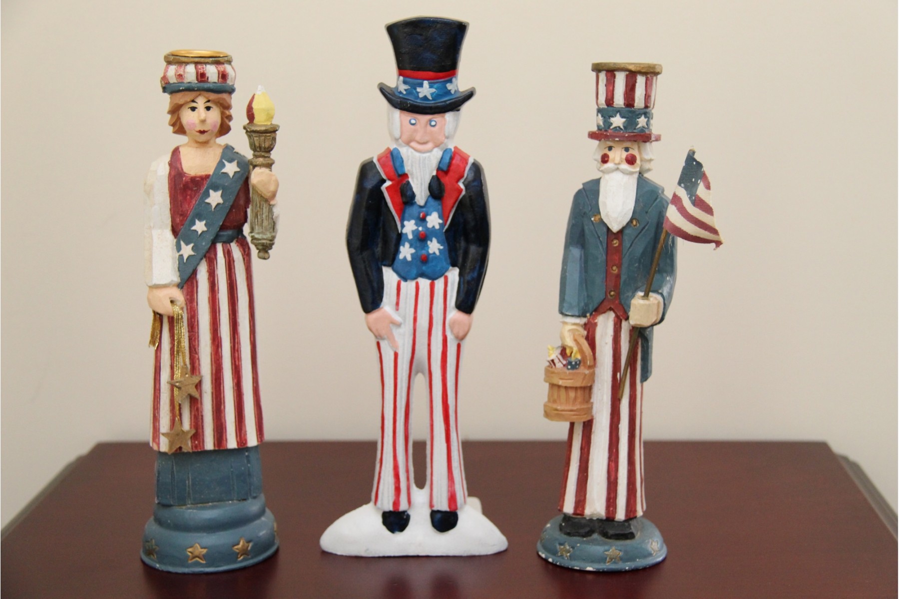 A Trio Of 4th Of July Candlesticks And Figurine