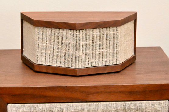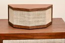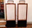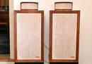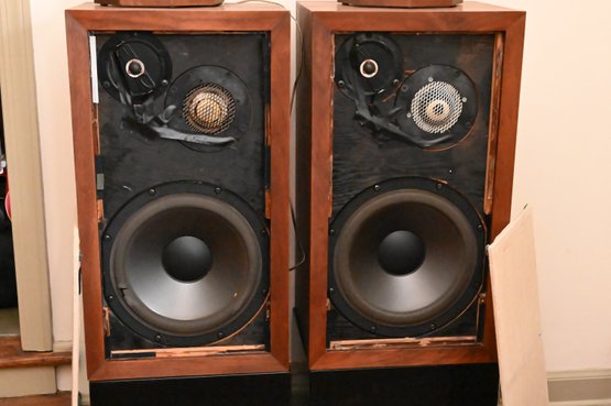 Good vintage condition with age-appropriate wear. Cabinets show light surface marks and minor finish wear; labels intact. Rear connections and controls present. Microstatic tweeters appear complete with wiring intact.