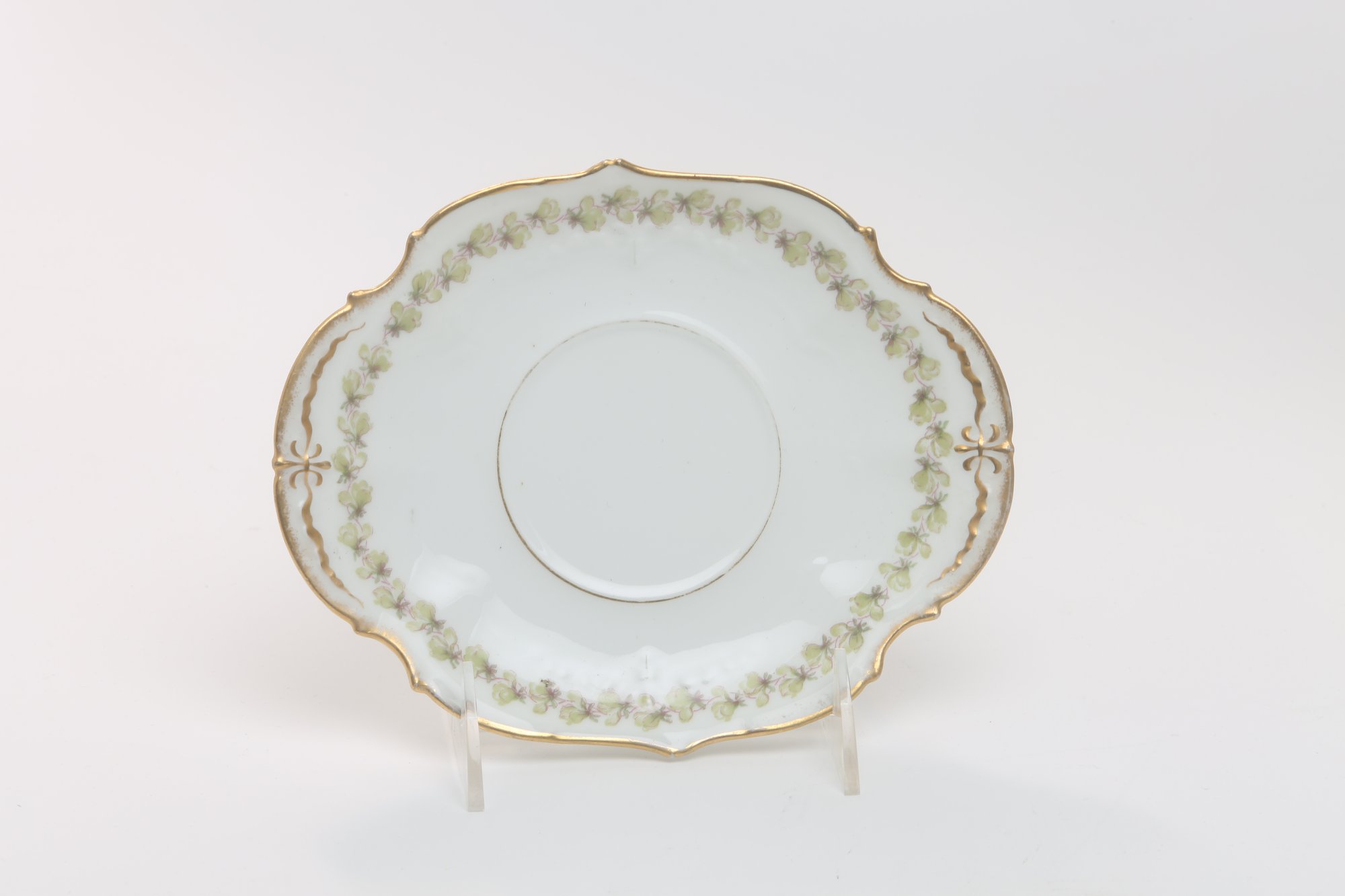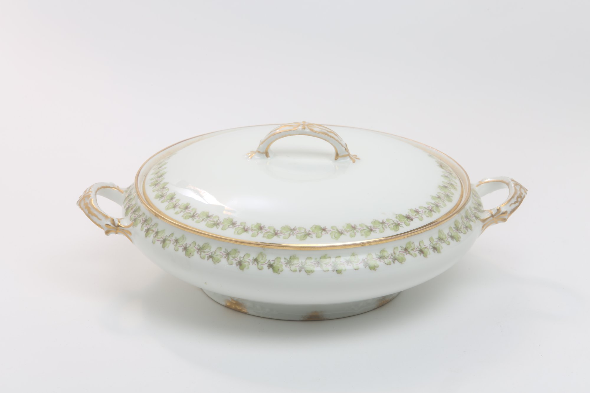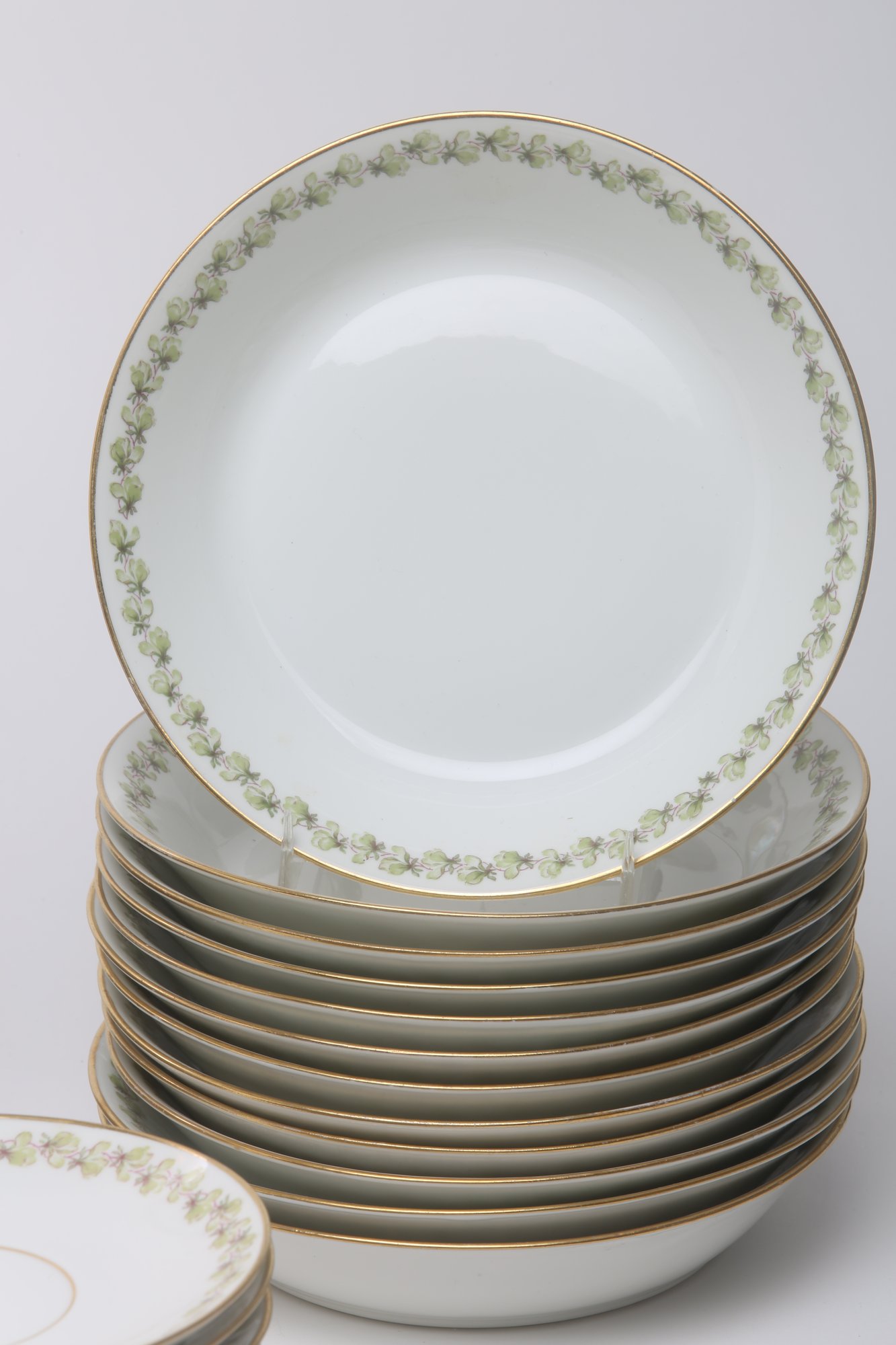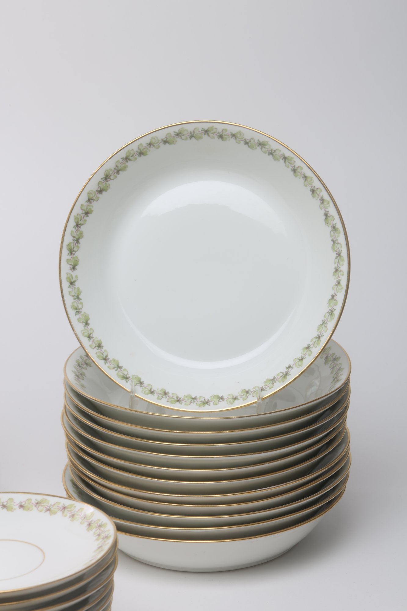 12 dinner plates, 11 salad plates, 12 soup bowls, 12 berry bowls, 12 saucers, 20 cups, 1 covered casserole, 1 gravy with under plate