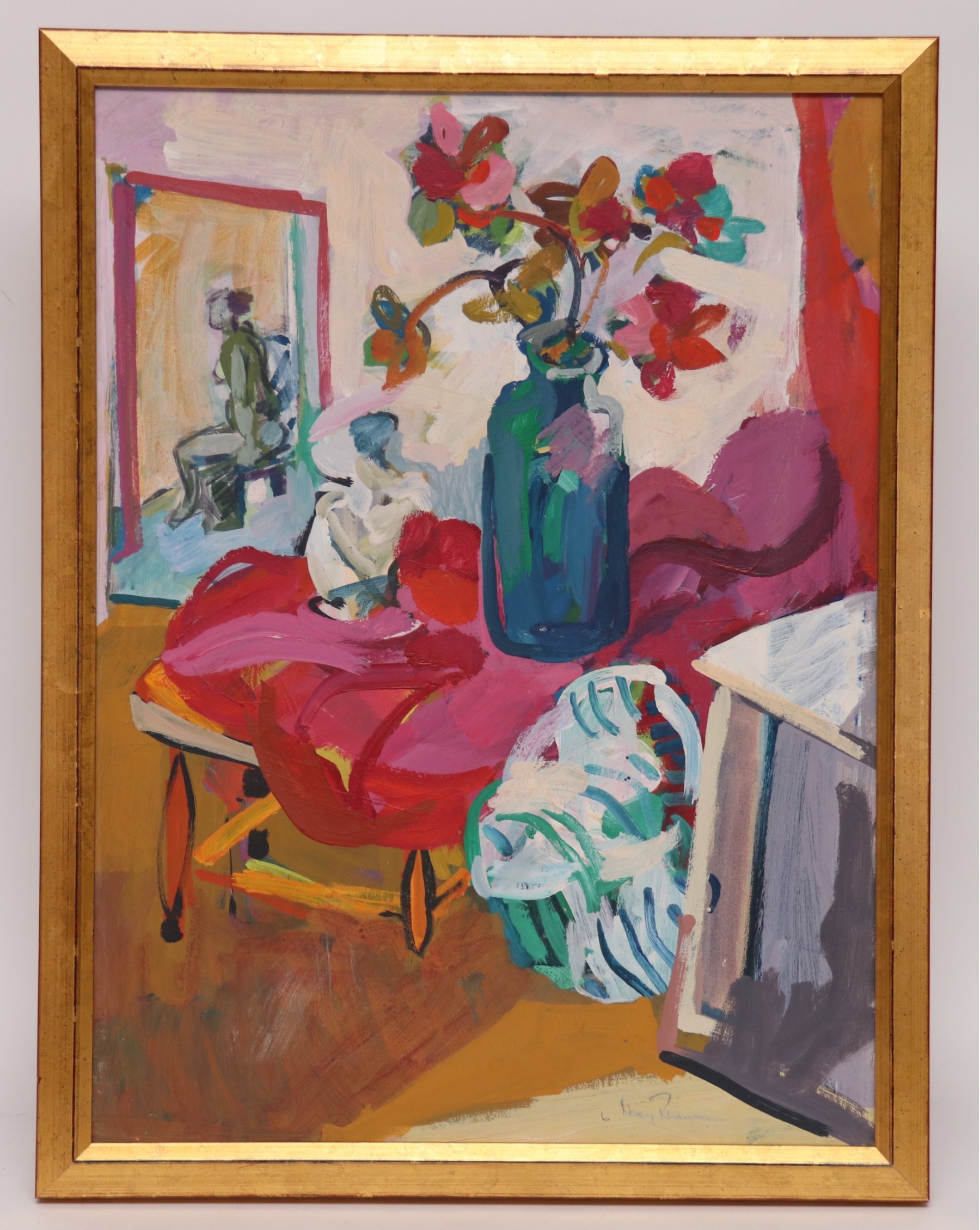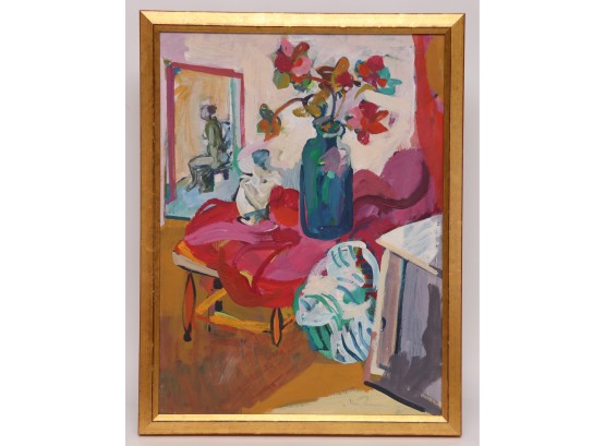 This painting is in overall good condition in a gold painted frame ready to hang.