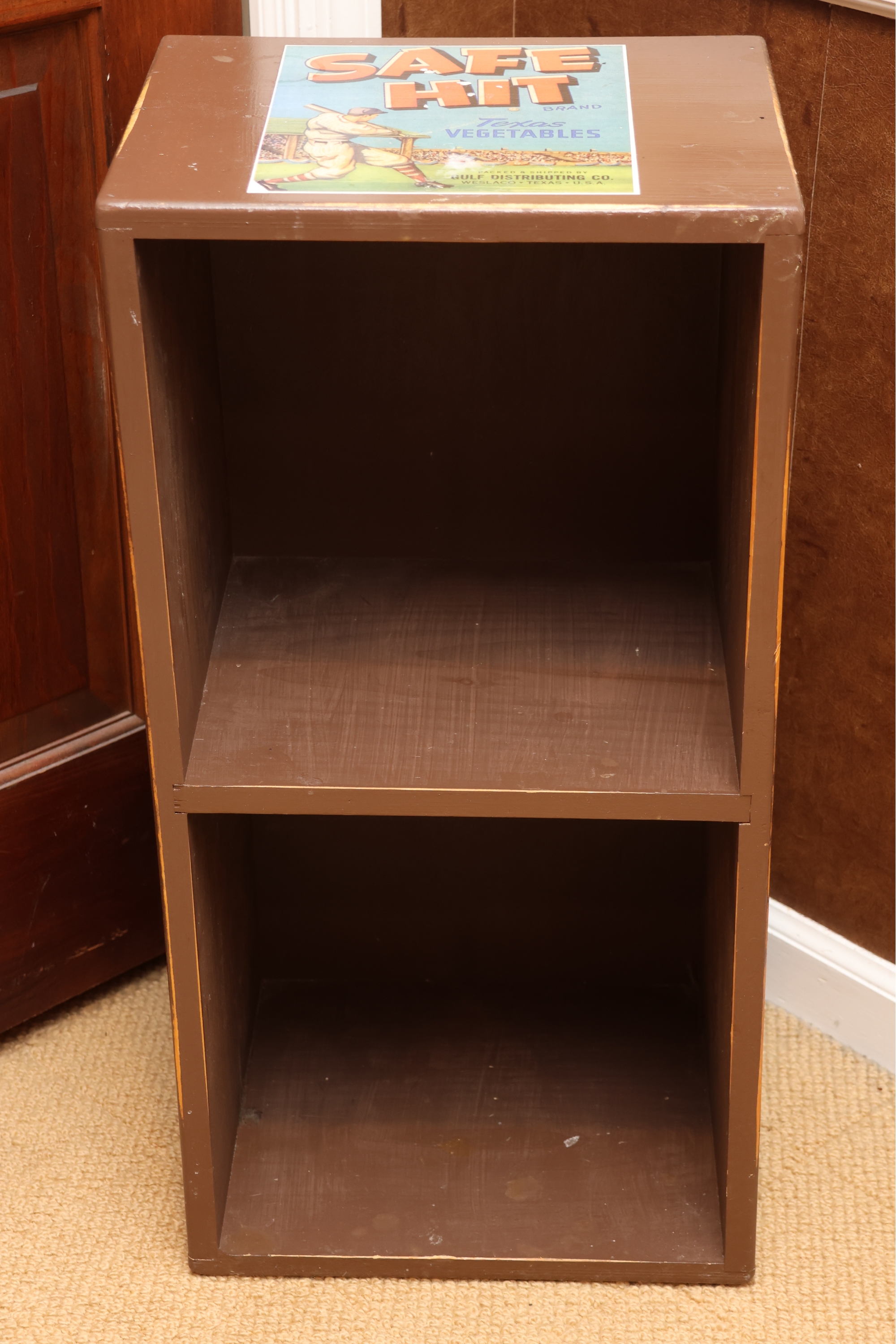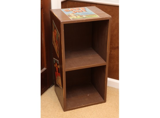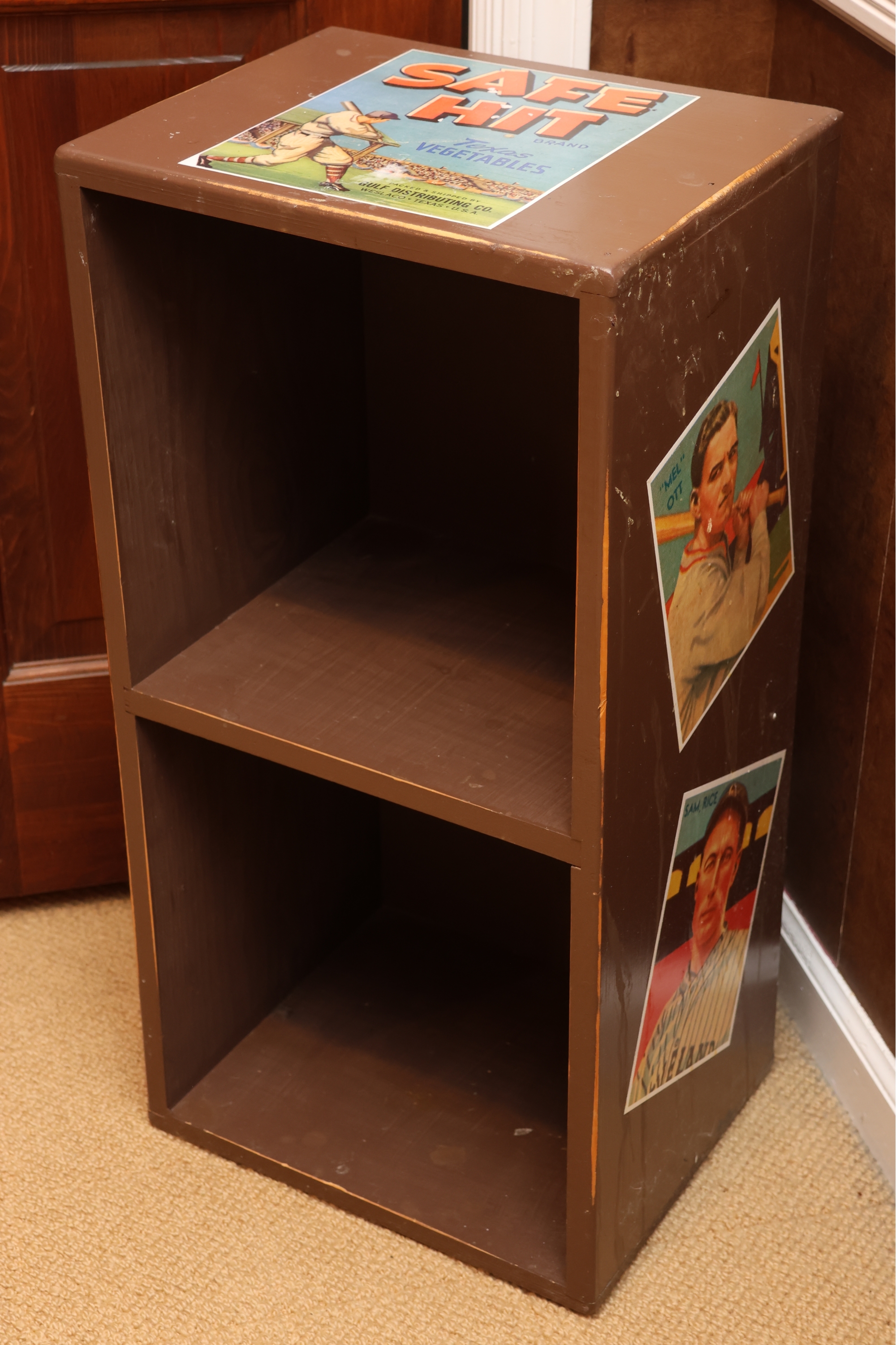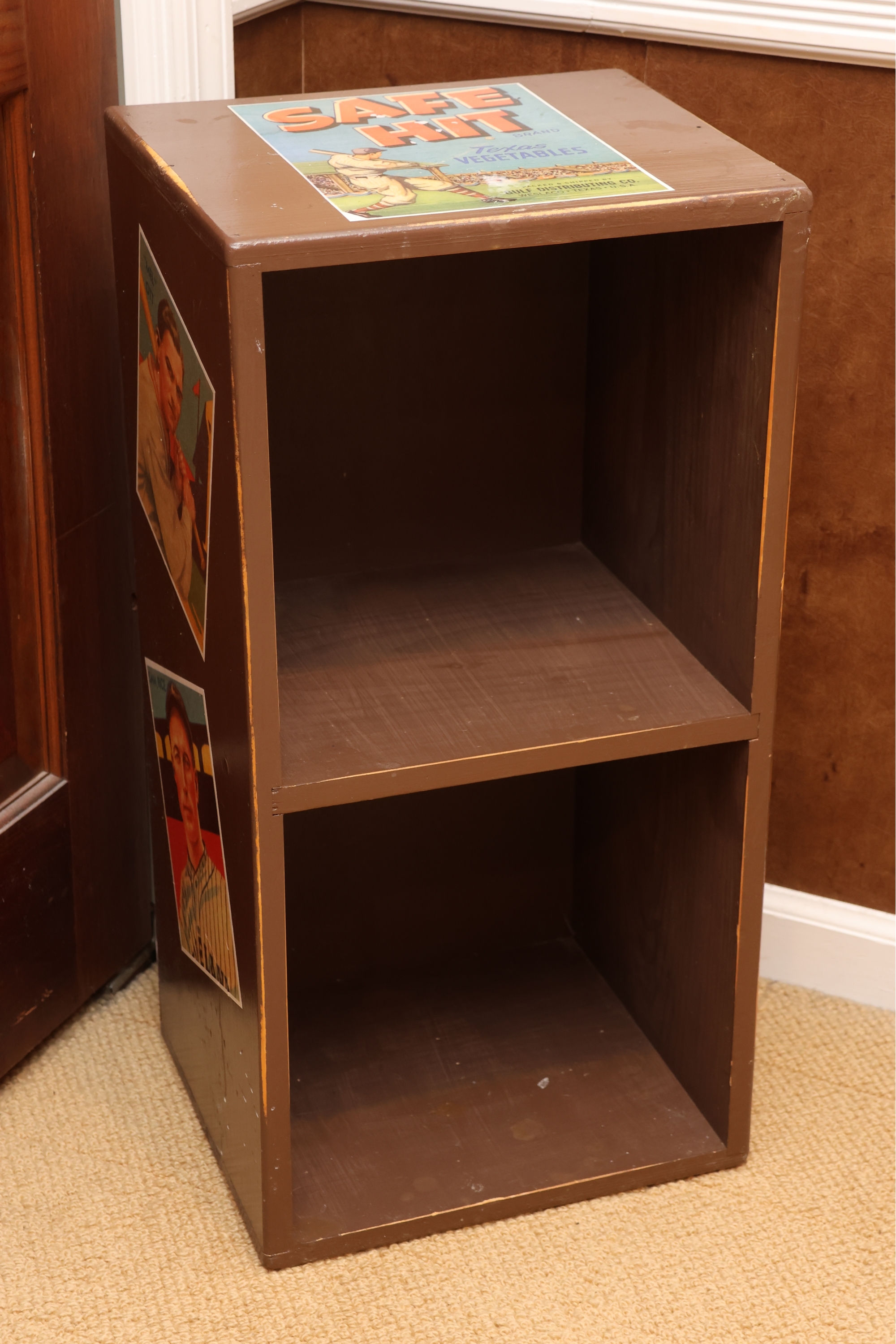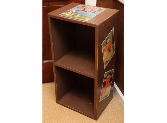 Painted Wooden Two-Tier Shelf With Safe Hit Baseball Motif