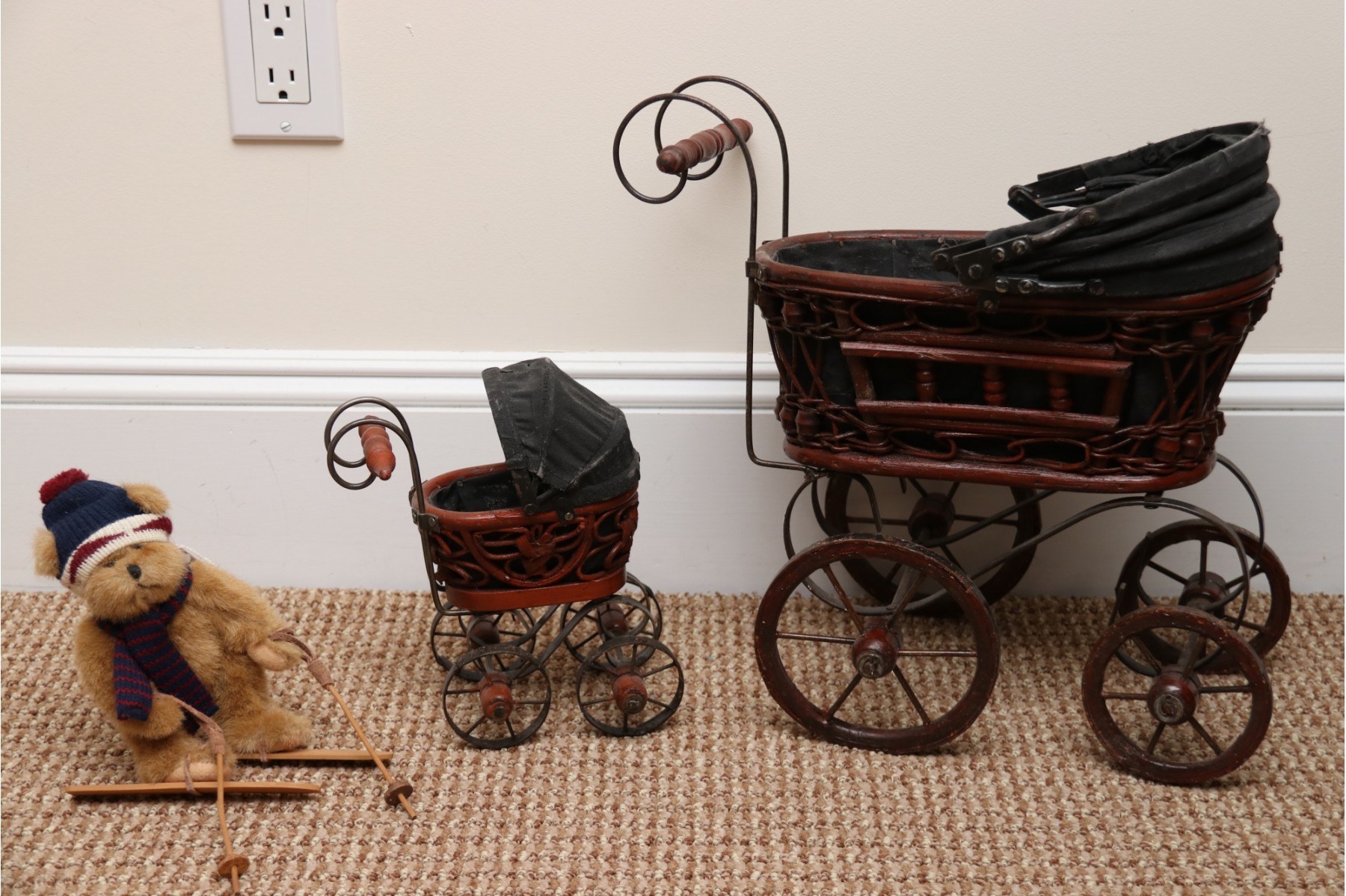 Pair Of Doll Carriages With Teddy Bear