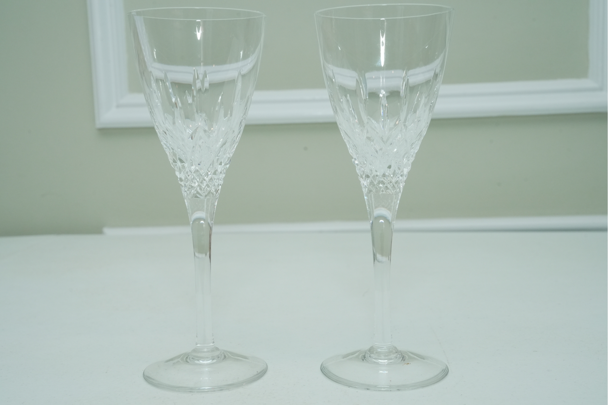 Pair Of Faceted Clear Glass Stemware With Cut Designs