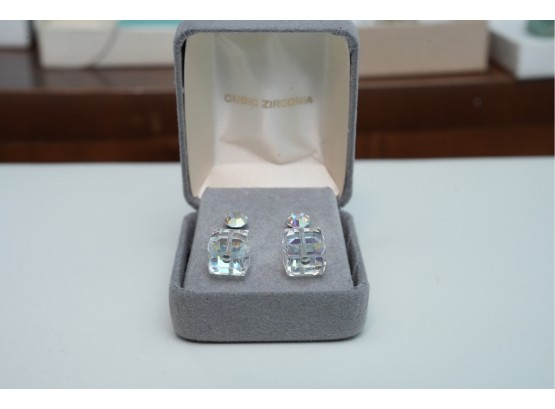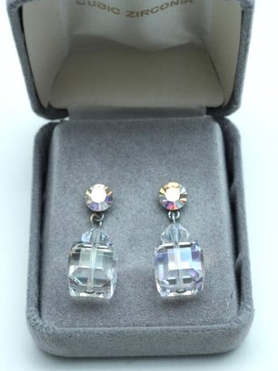 Pair Of Faceted Cubic Zirconia Earrings