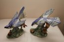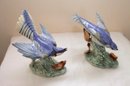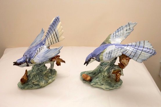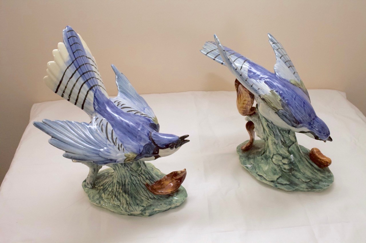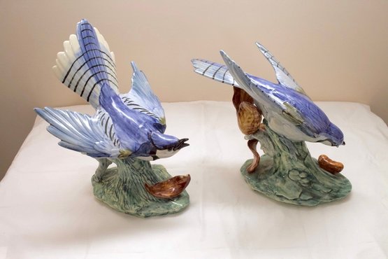Pair Of Glazed Ceramic Blue Jay Figurines