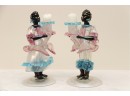 a pair of Murano glass figural candlesticks. One of the candlesticks has been repaired as seen in the photos
