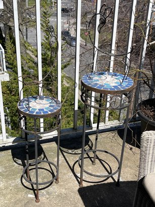 Both tables have some rust and wear but are in usable condition. Included are separate animal shaped wire drink holders.