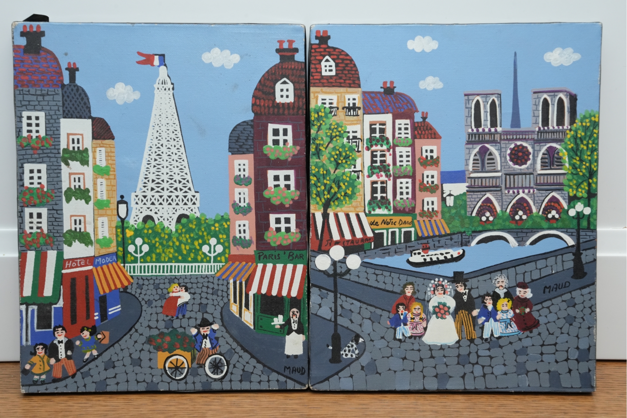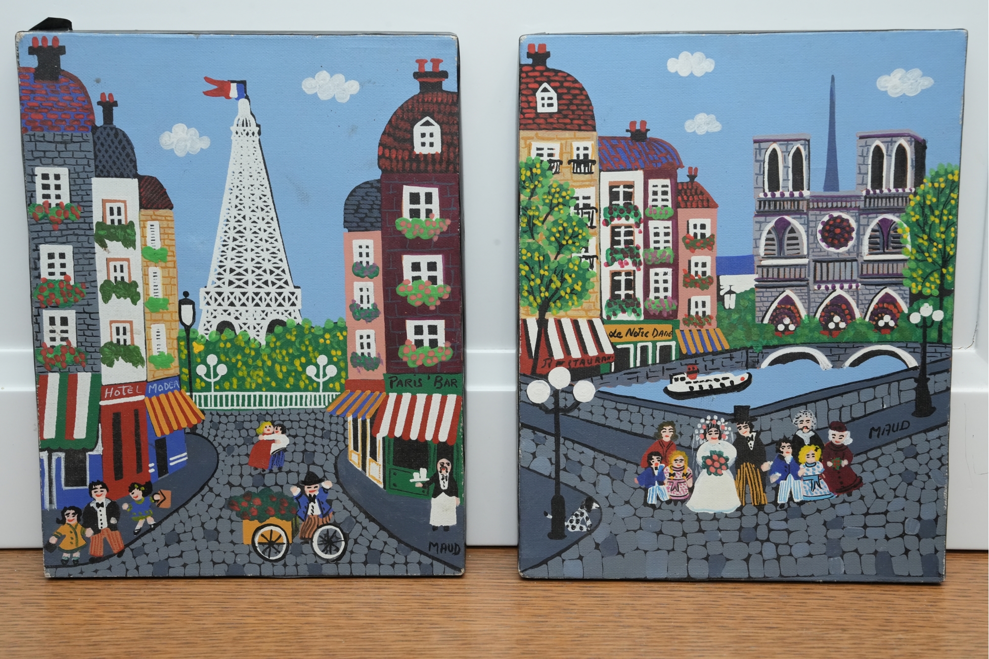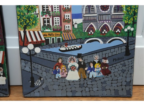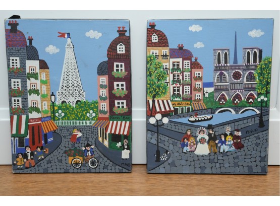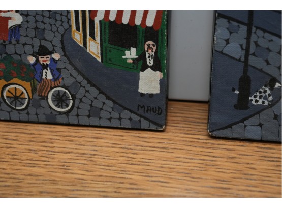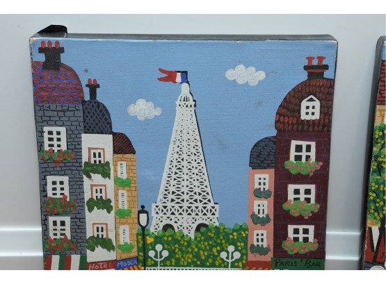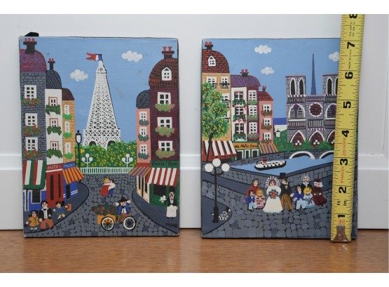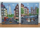 Pair Of Paris Street Scene Painted Panels