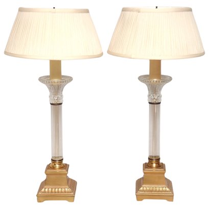 Corinthian Style Columns And Gold toned Metal base with Double fixtures and pull Chain Switch .