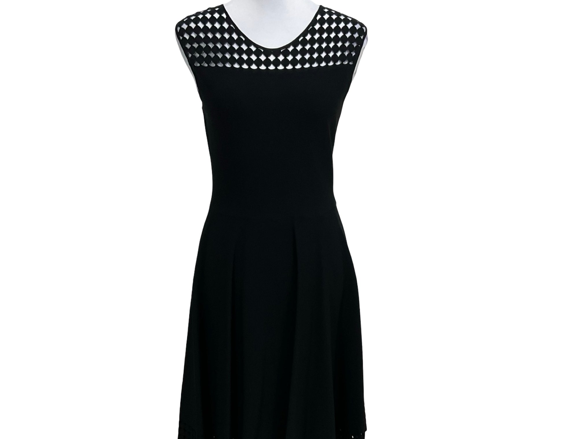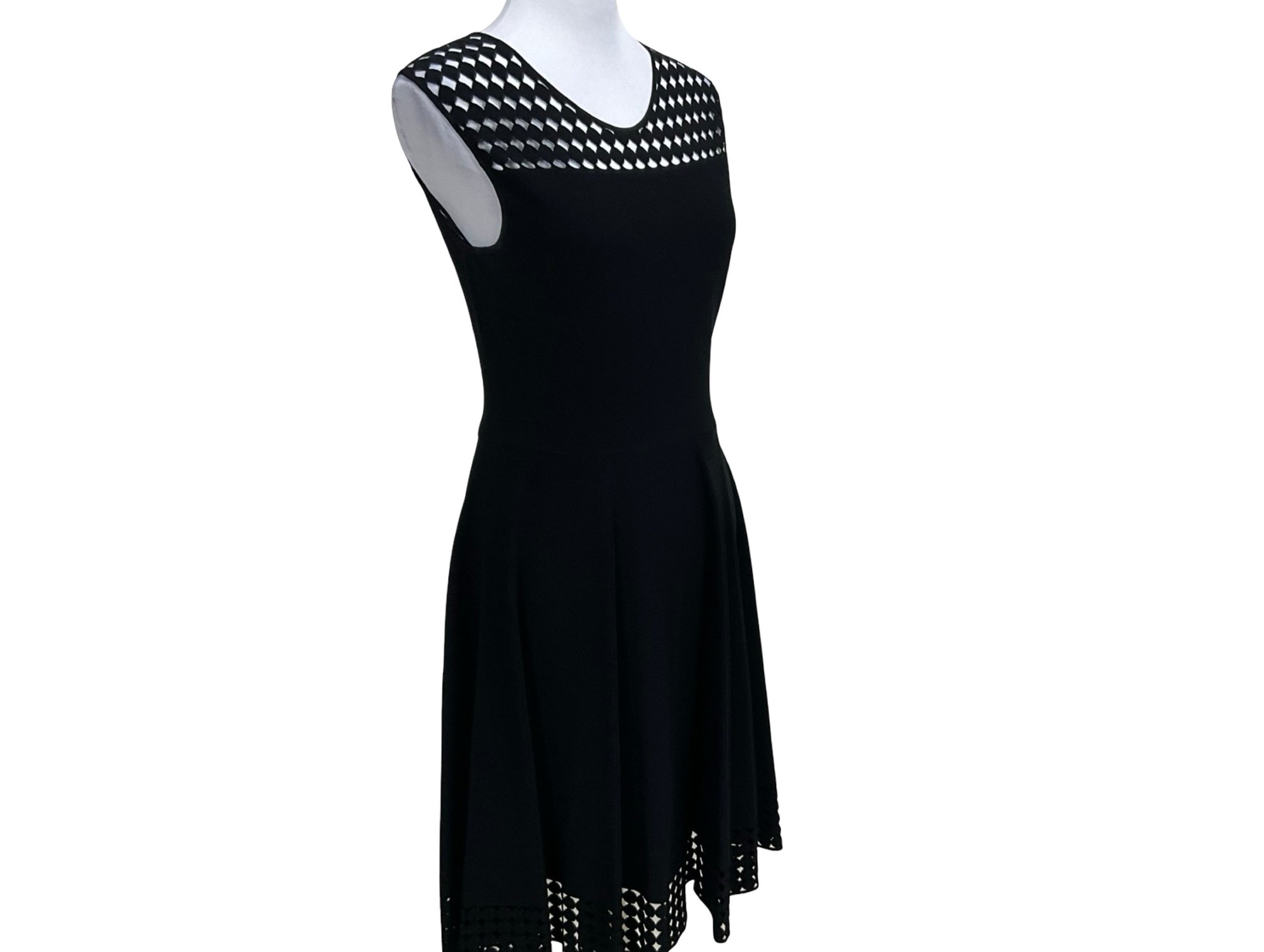 AKRIS Punto Eyelet Fit & Flare Black Dress Size 10