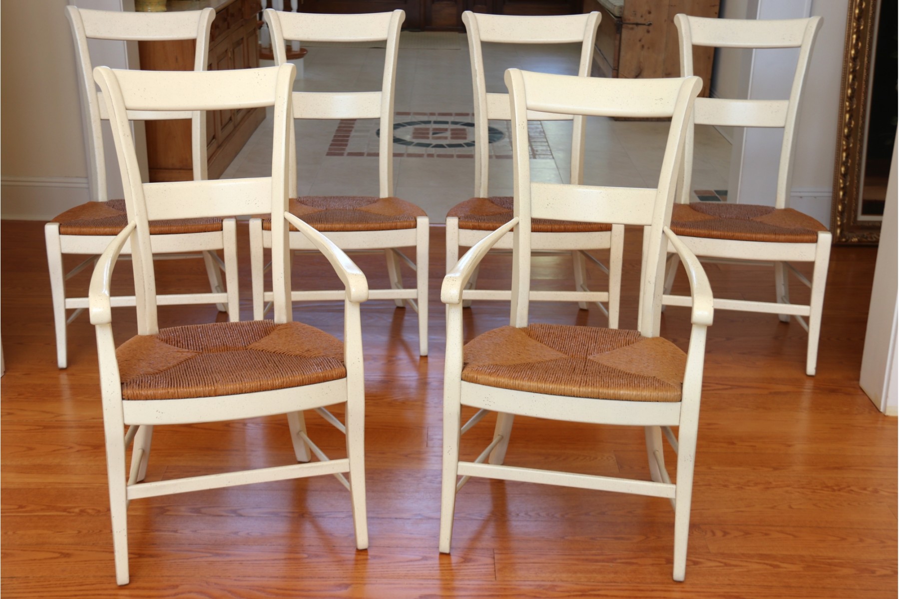 White with rush seats and custom cushions