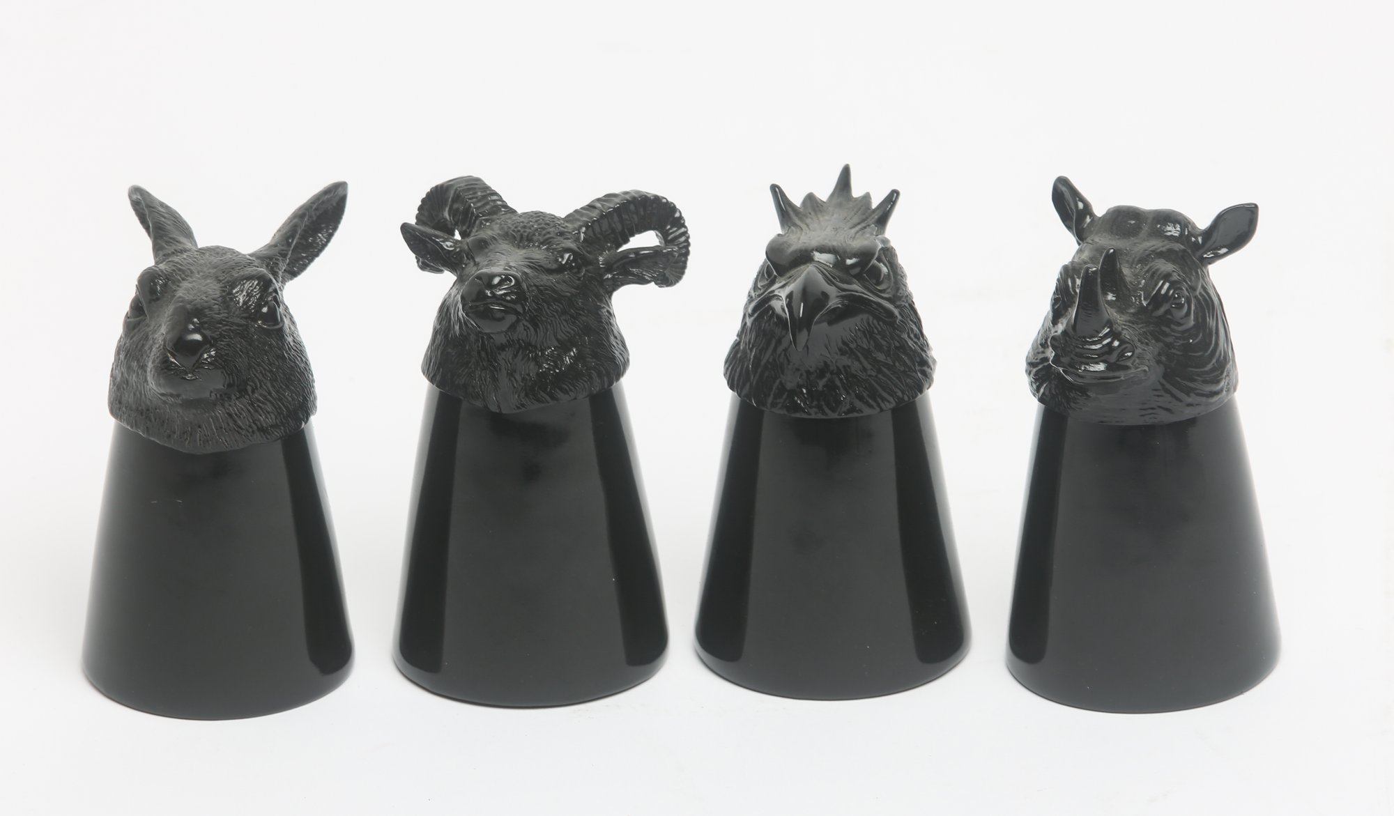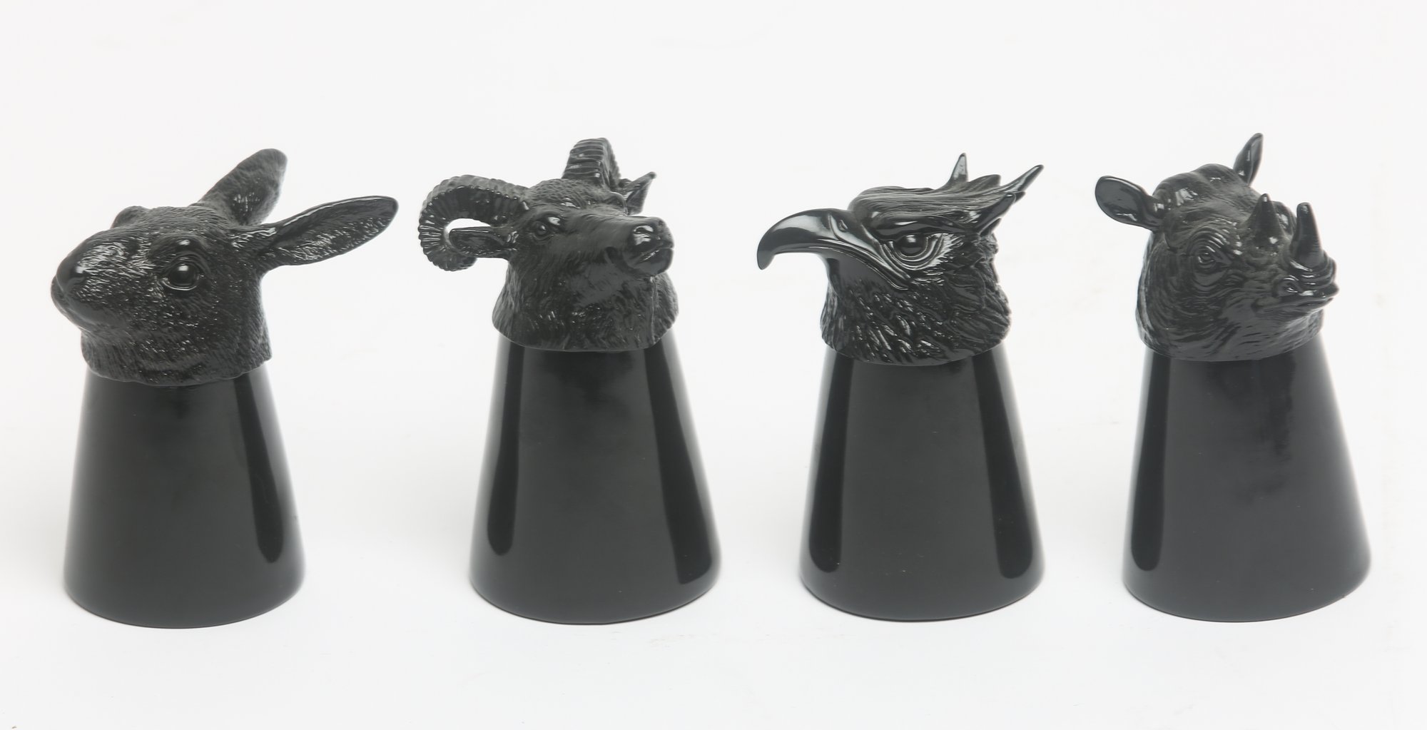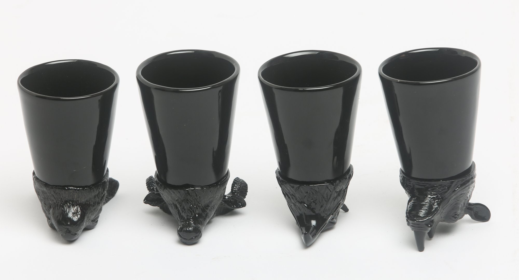Animal Head Shot Glasses- good condition - measures 4" H X 2 " Dia. Opening