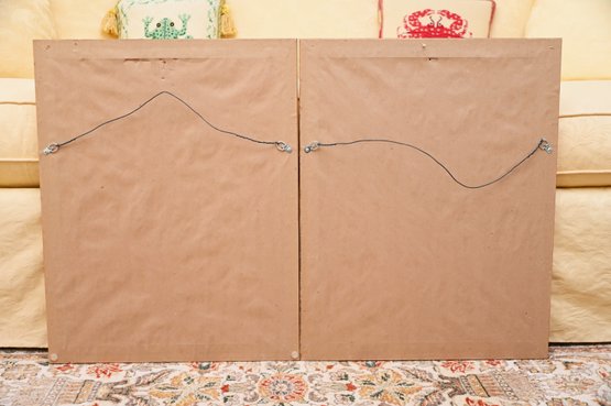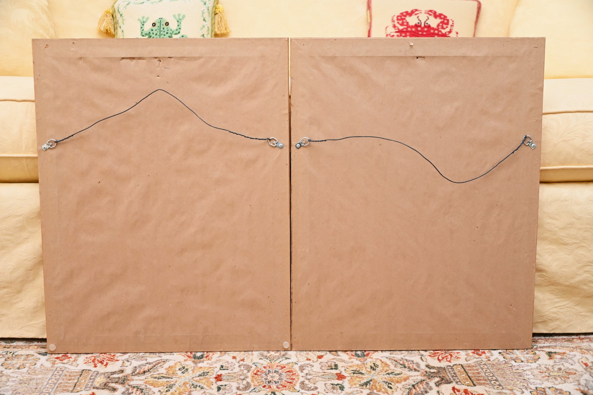 Each print showcases different botanical specimens, capturing the delicate textures of leaves, stems, and flowers with fine detailing. The left print features a variety of lush green foliage and flowering plants, while the right print presents a large-leafed plant with berries and blossoms.