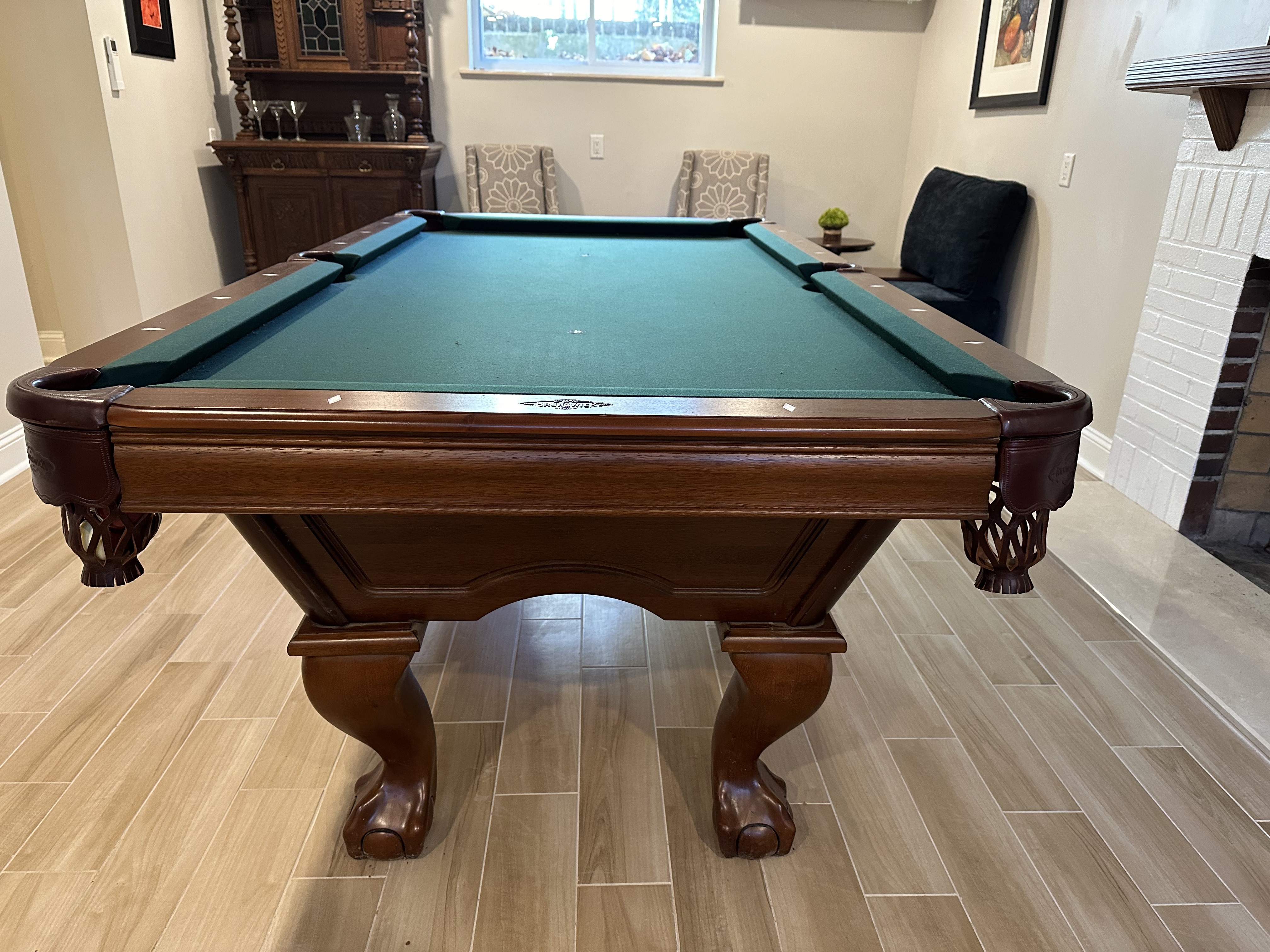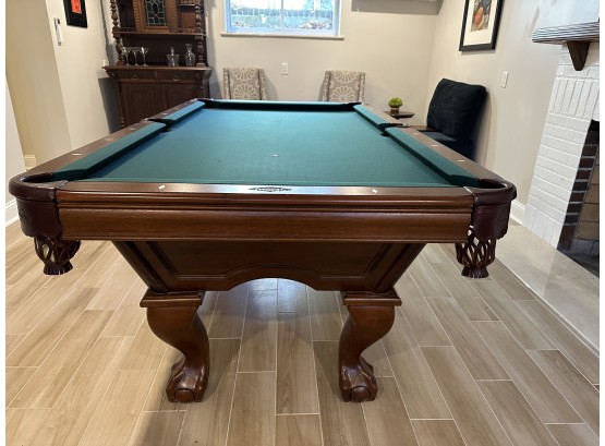 Antique Brunswick Danbury 8' Walnut Pool Table And Pool Cues/Rack