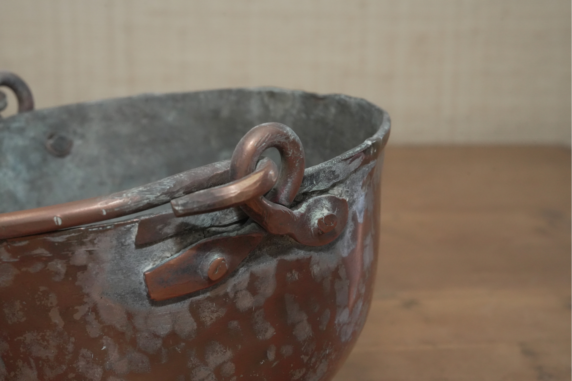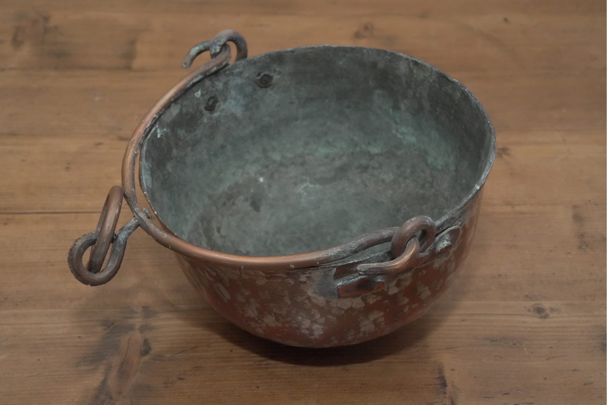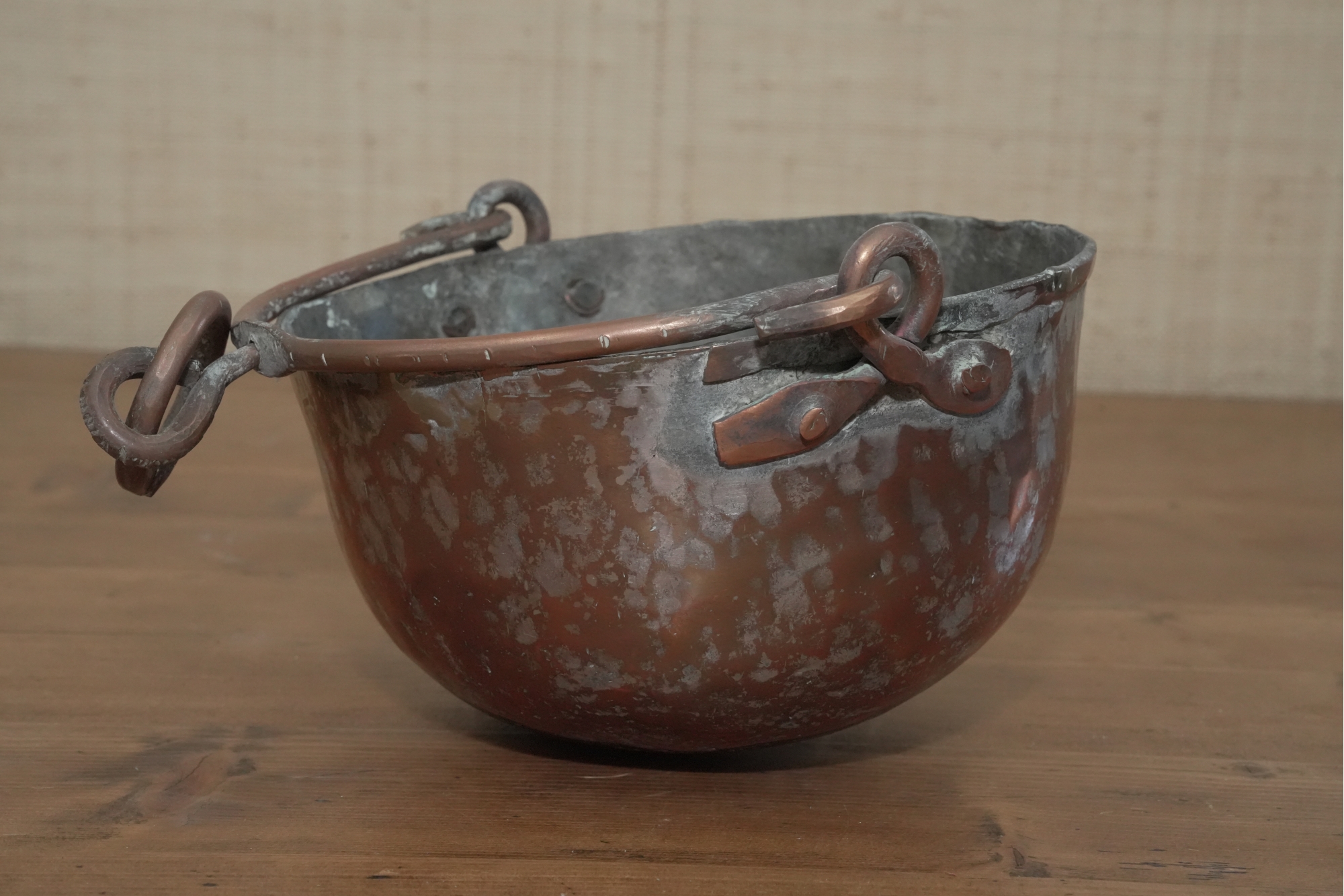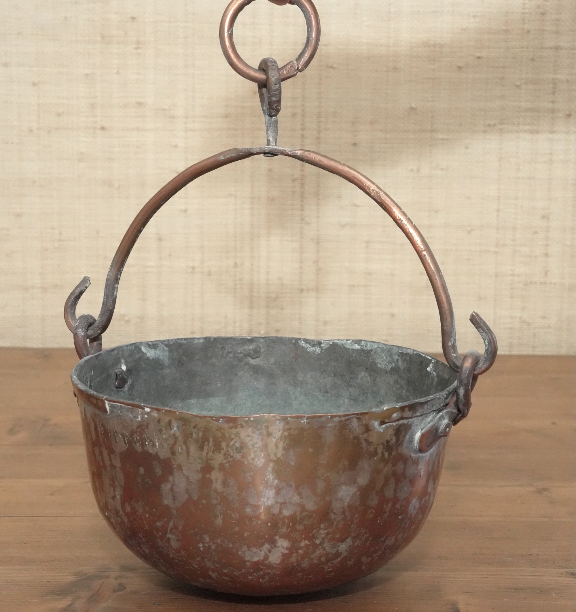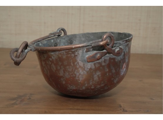 Antique Copper Pot With Hanging Handle