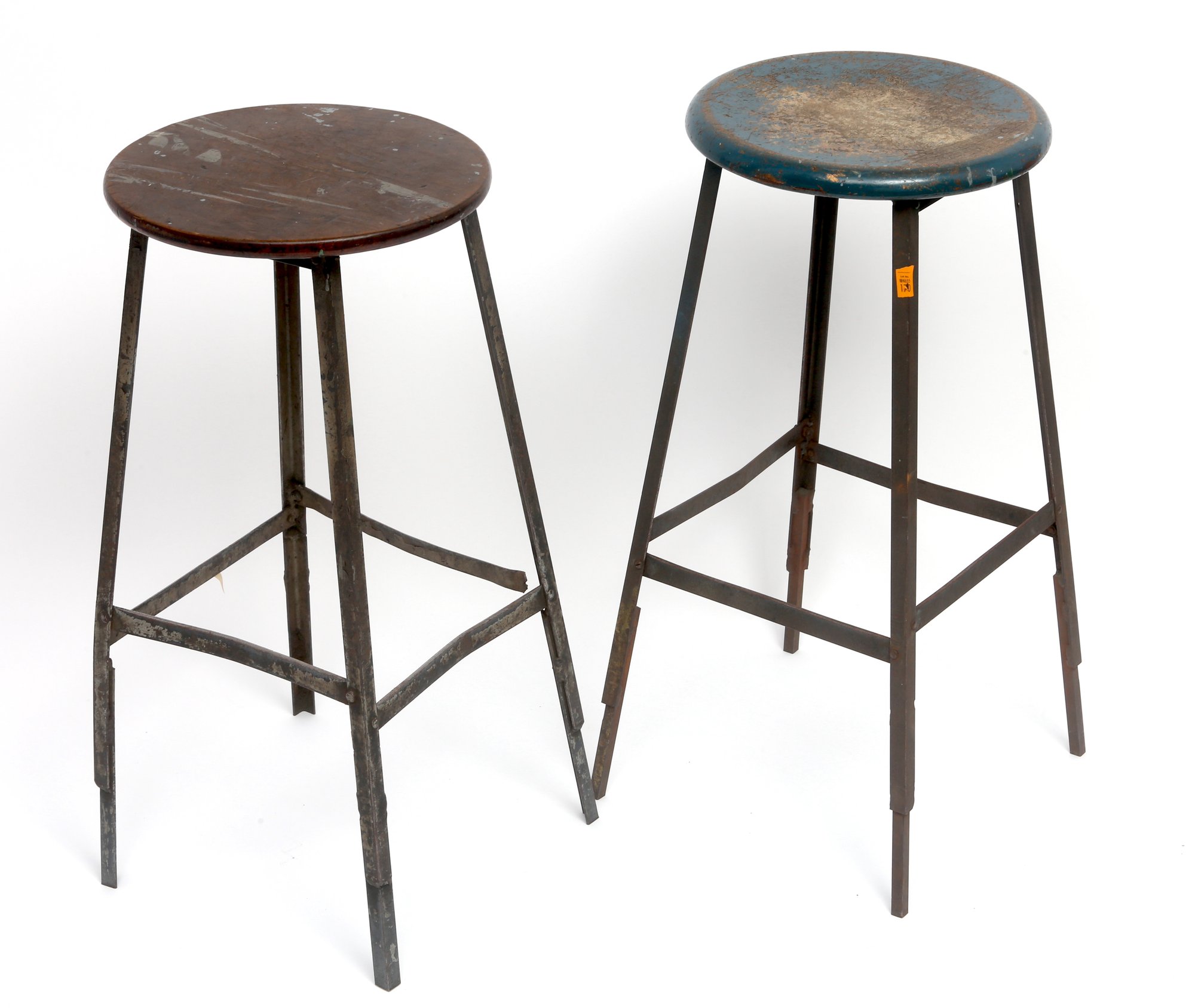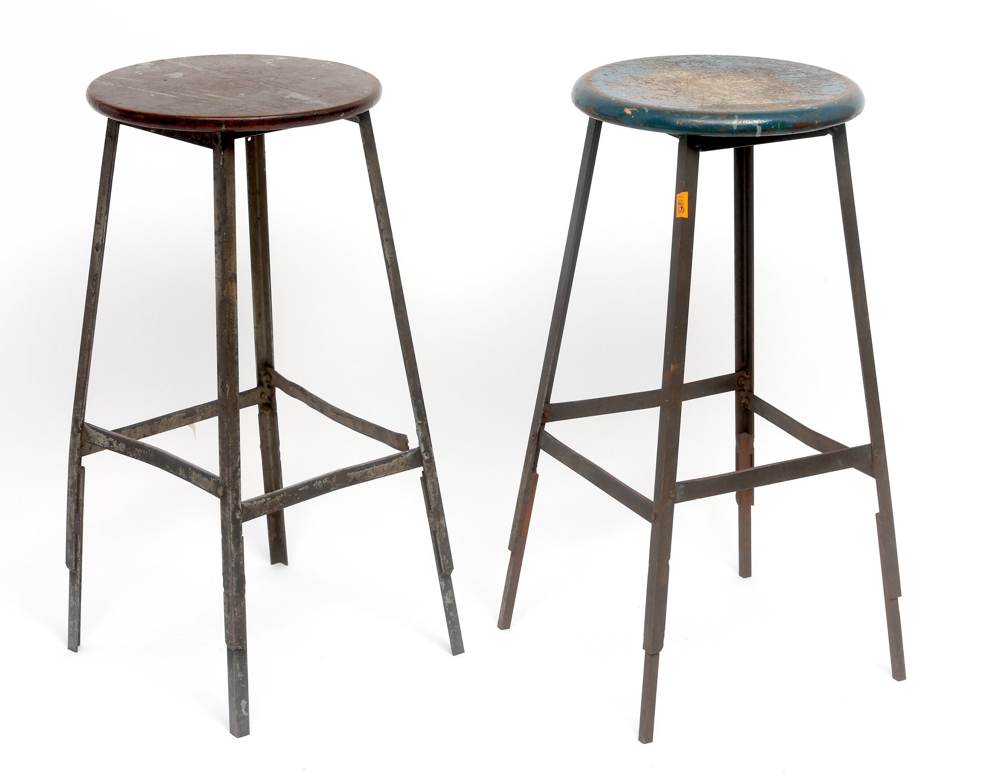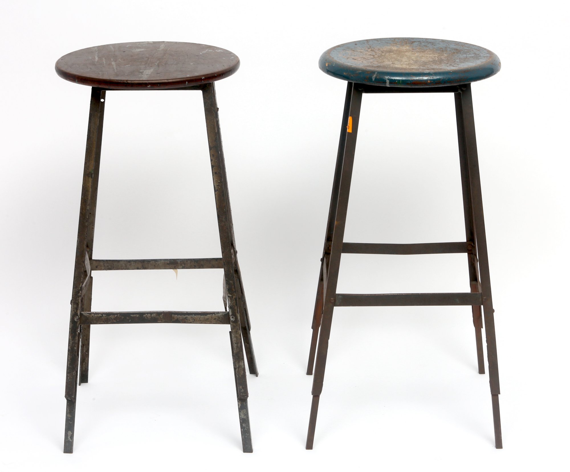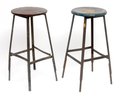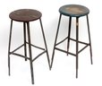 2pc. Wooden Antique stools (blue sat and brown seat)