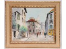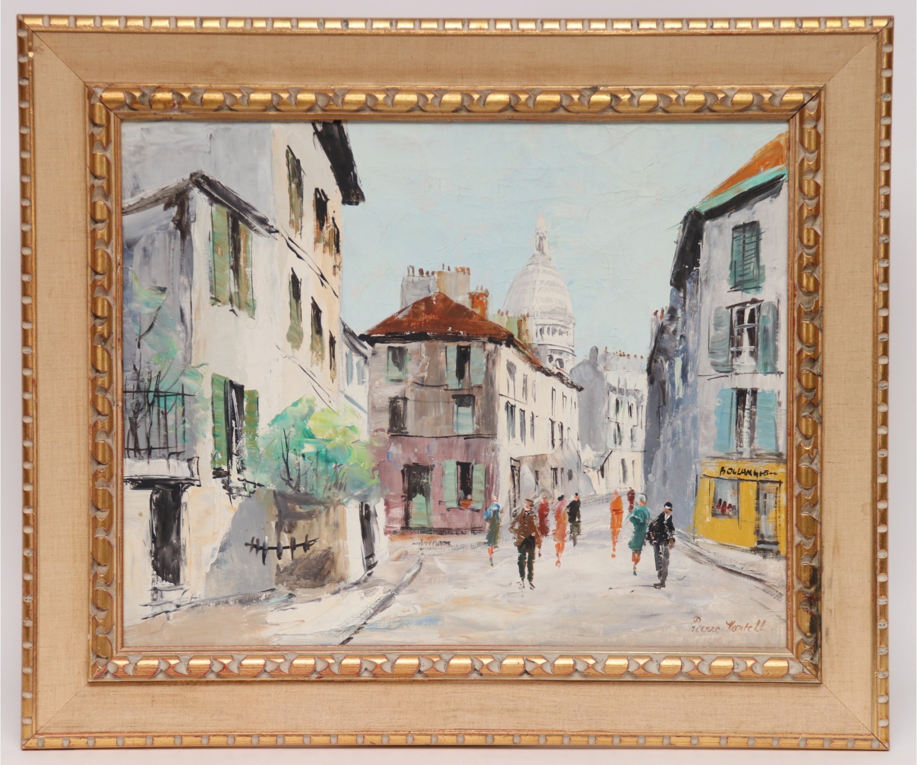 This canvas painting is in overall good condition in a gold carved frame ready to hang.